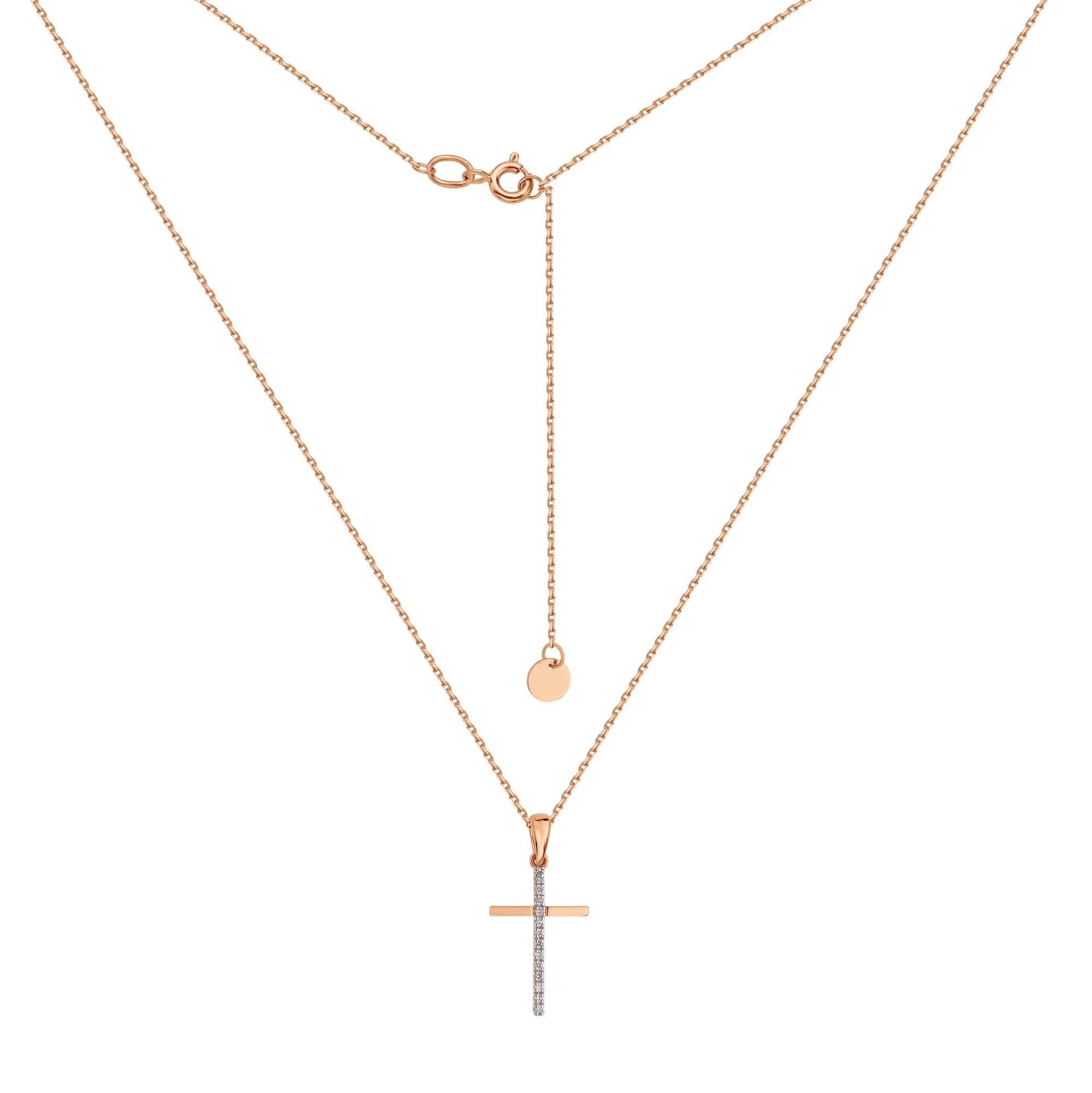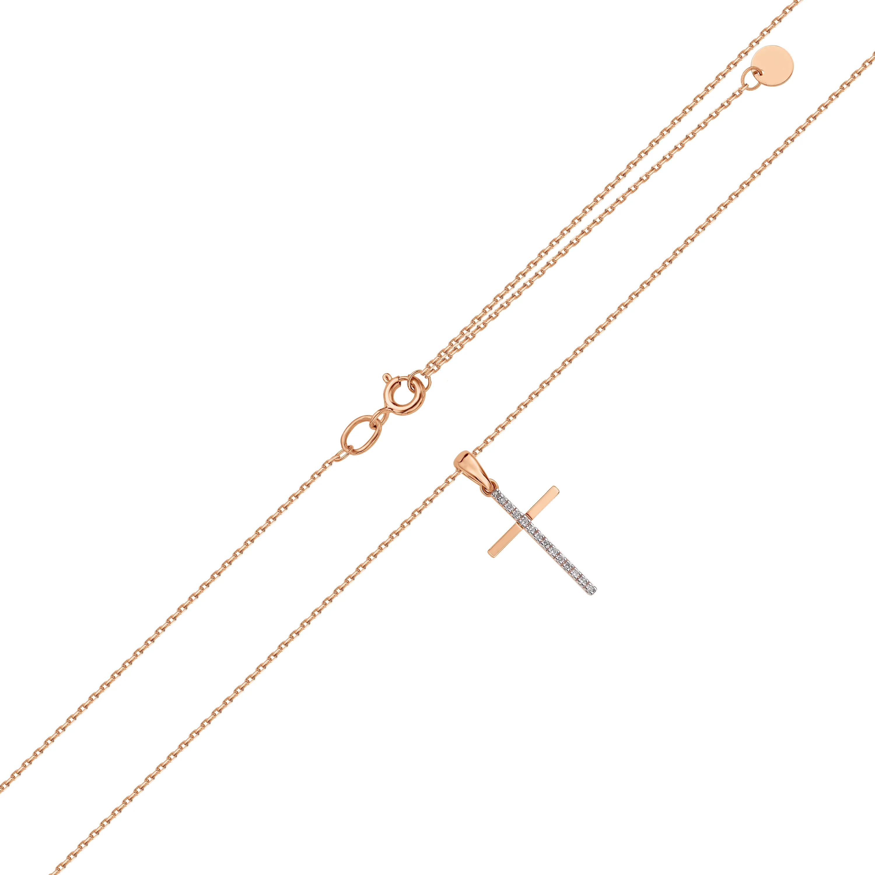 Ланцюжок з підвісом "Хрестик" з діамантами у червоному золоті якірне плетіння - 2115443
