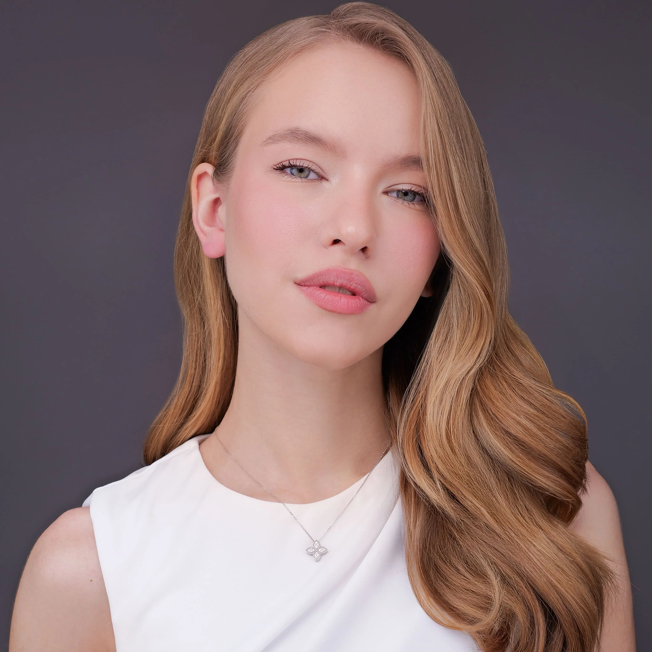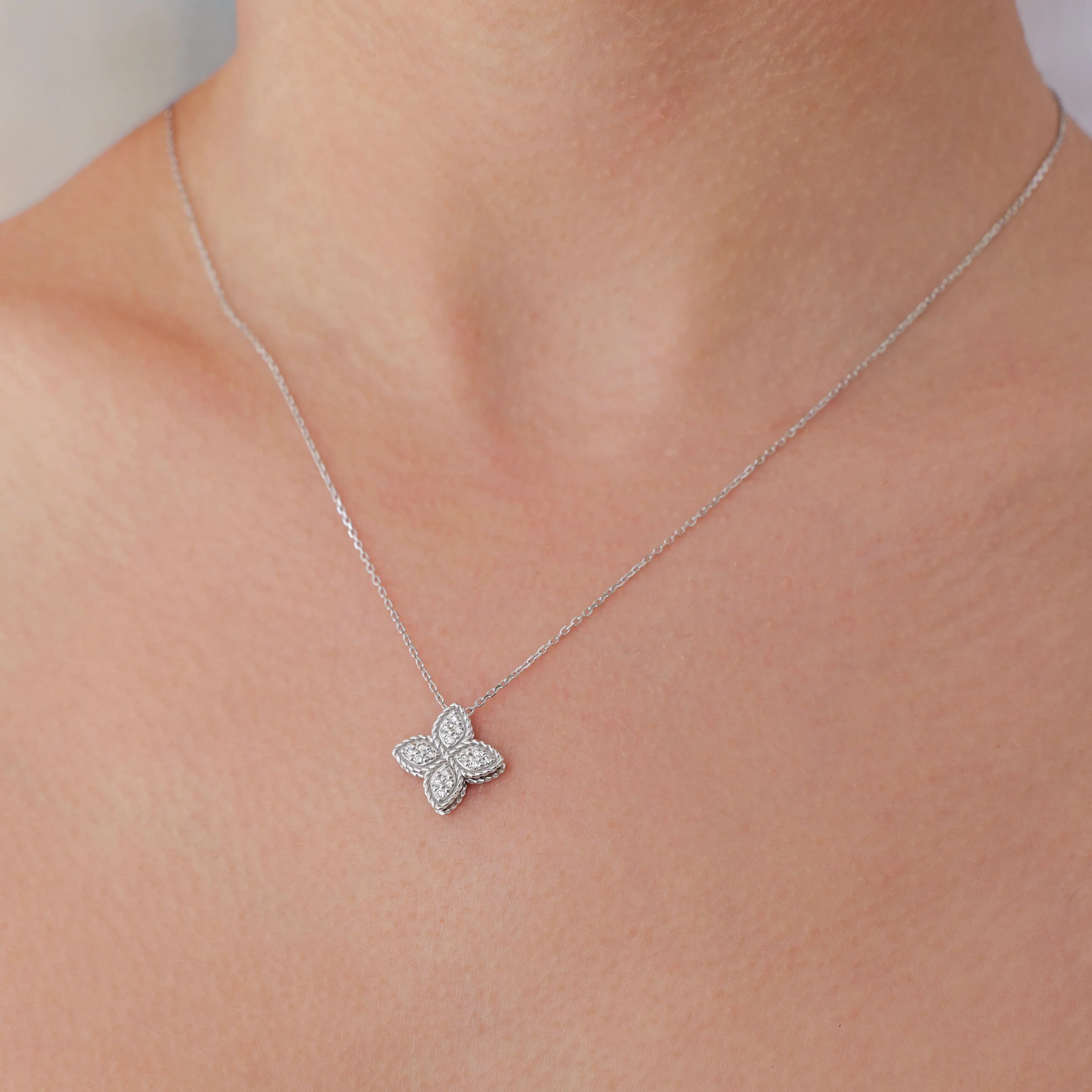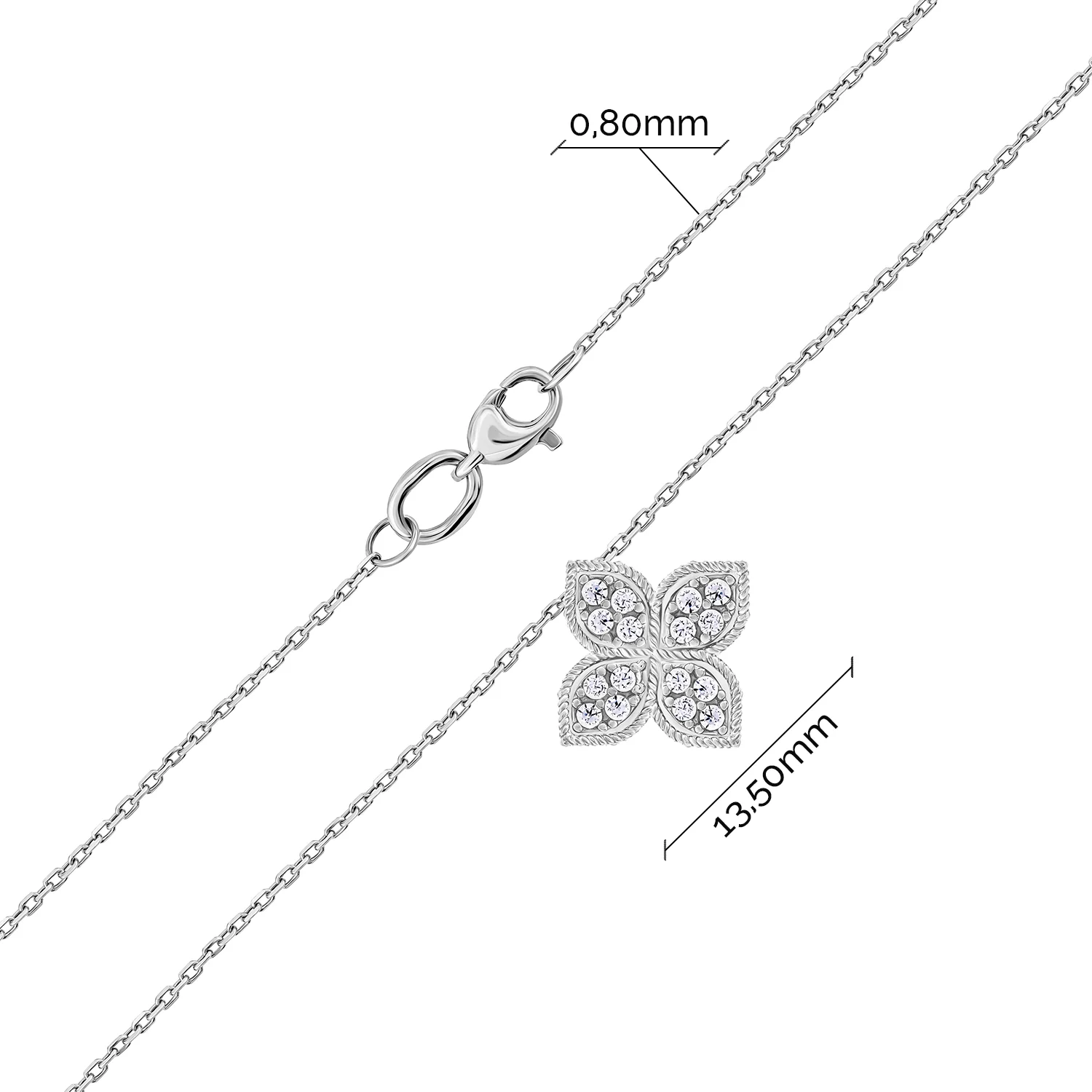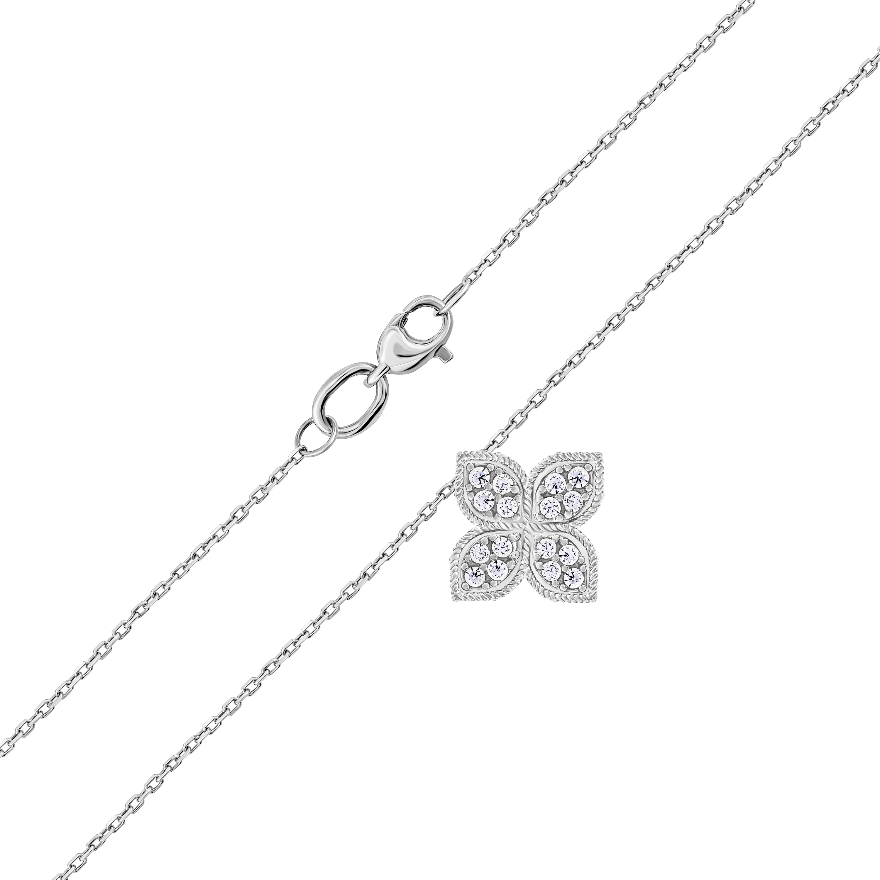 Ланцюжок з підвісом "Квітка" у білому золоті з діамантами плетіння якір - 1987638