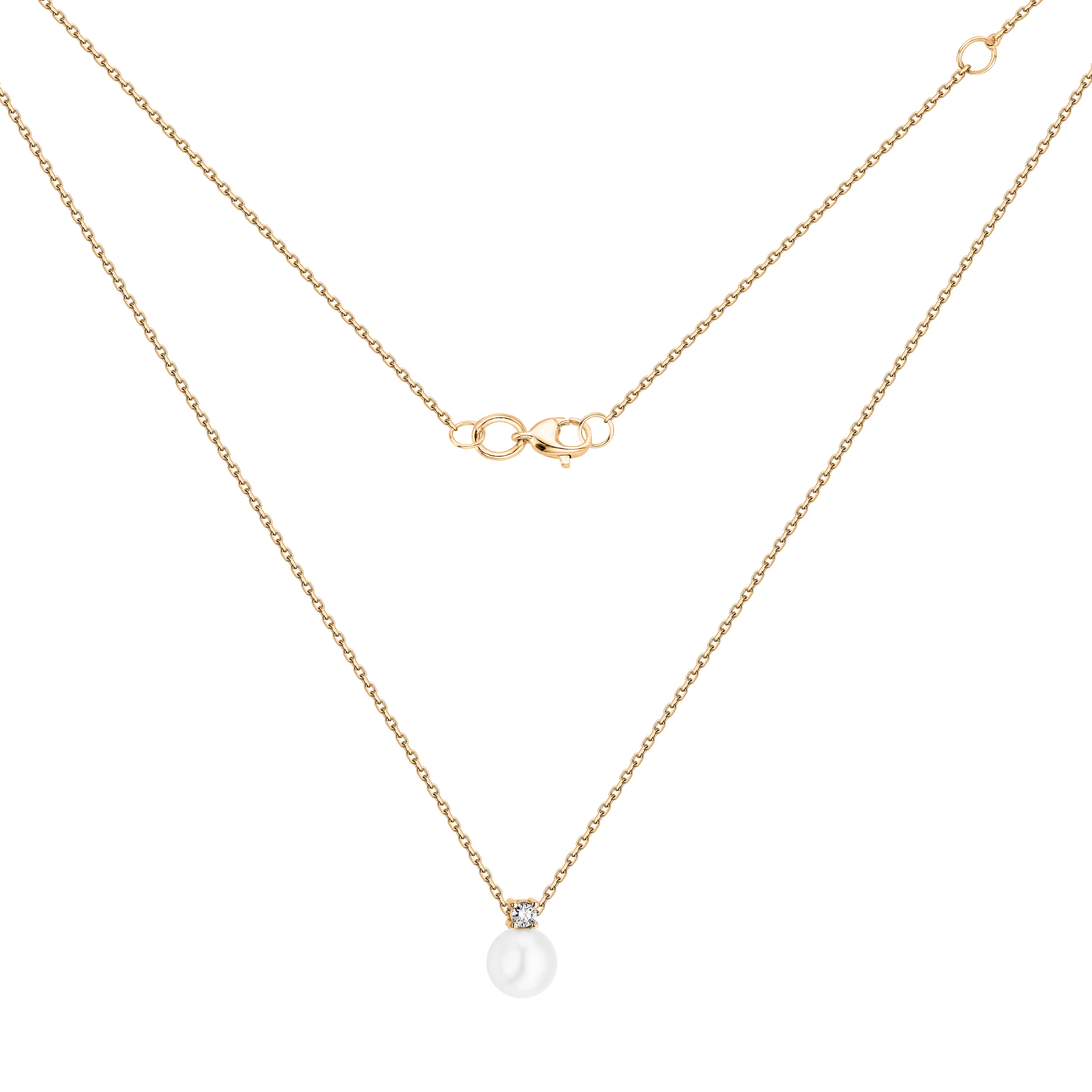 Кольє-краватка у червоному золоті з перлиною та якірним плетінням - 1941258