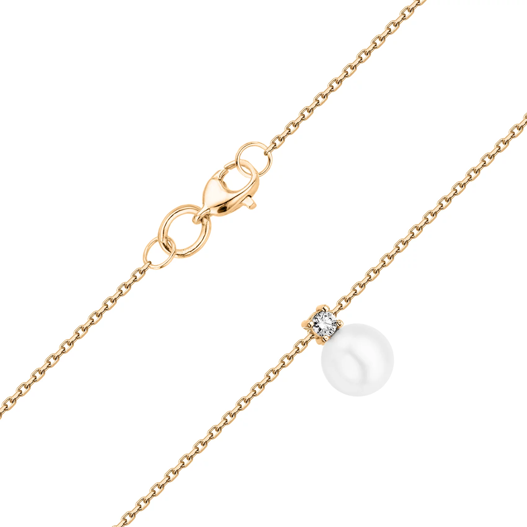 Ланцюжок у білому золоті з перлиною та діамантом плетіння якір - 1588879