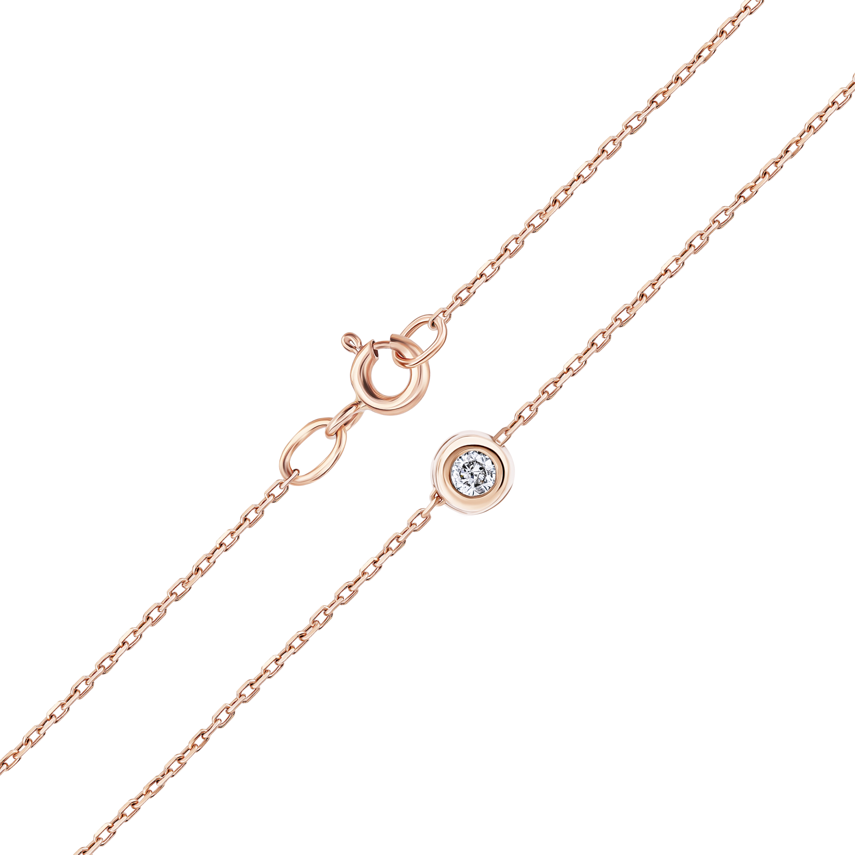 Ланцюжок з червоного золота з підвісом та діамантом плетіння венеціанське - 1778580