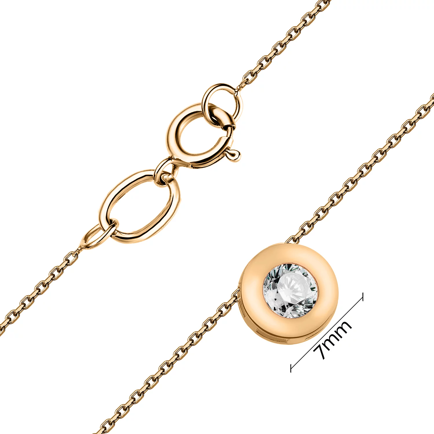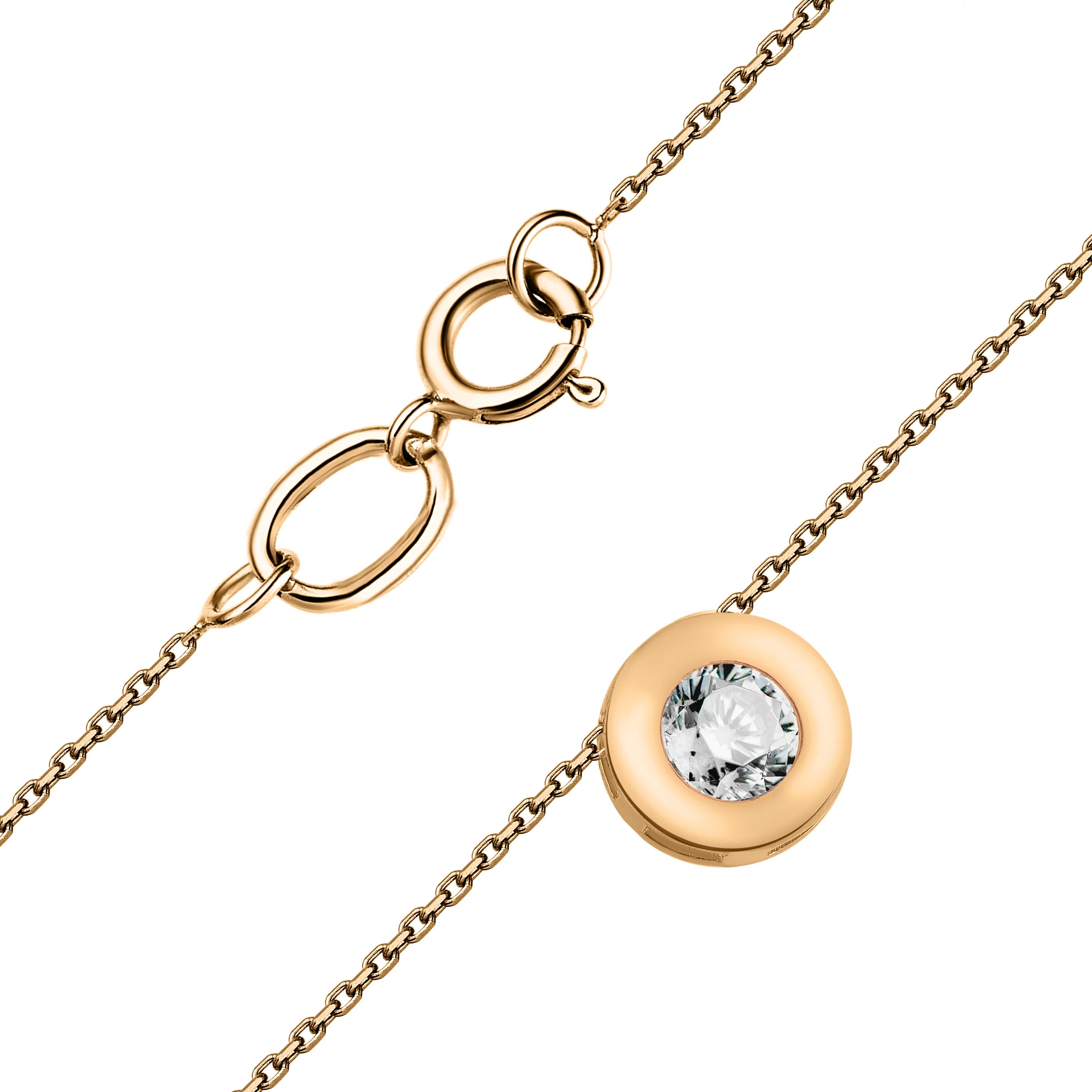 Ланцюжок з підвісом "Коло" з червоного золота з фіанітами плетіння якір - 1748054