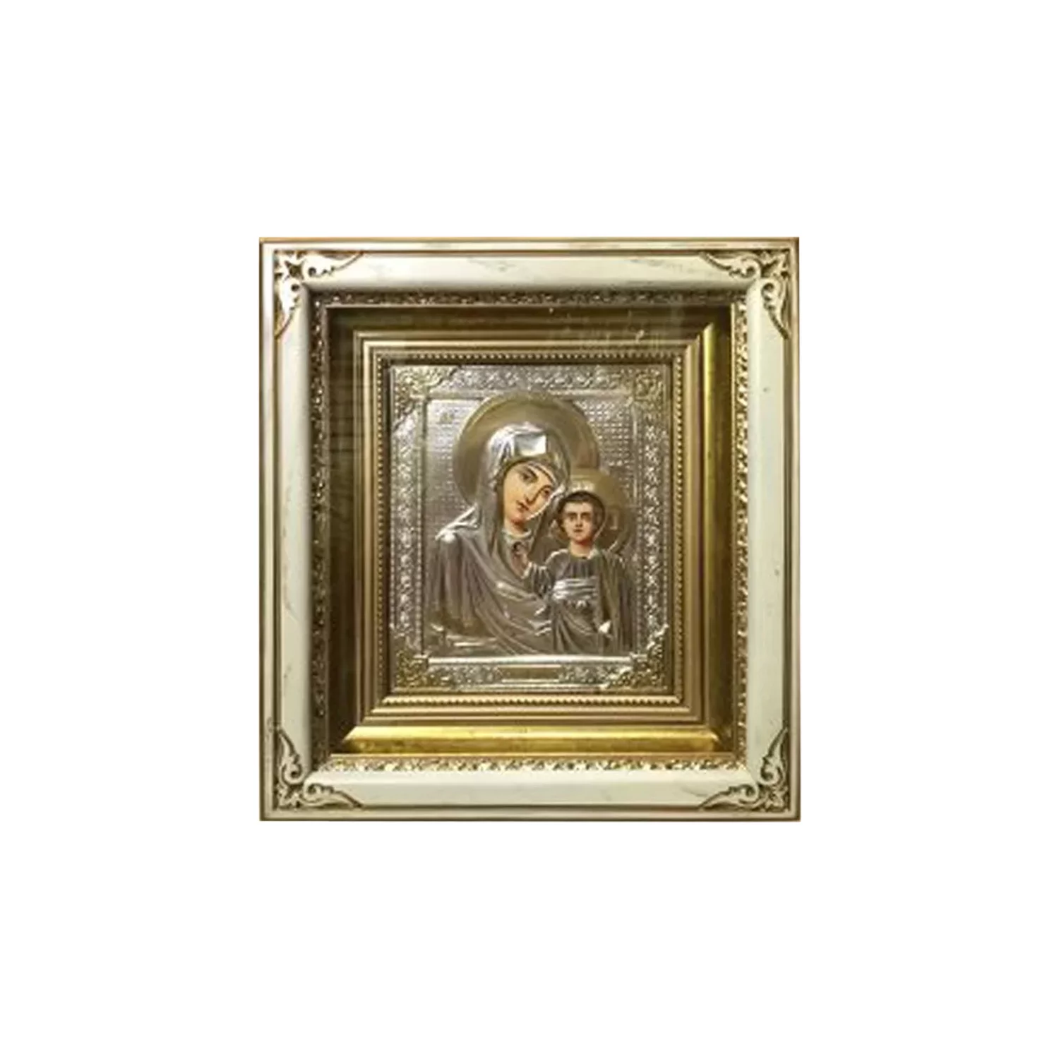 Ікона "Янгол Охоронець" зі срібла з позолотою у дерев'яній рамці - 1573265