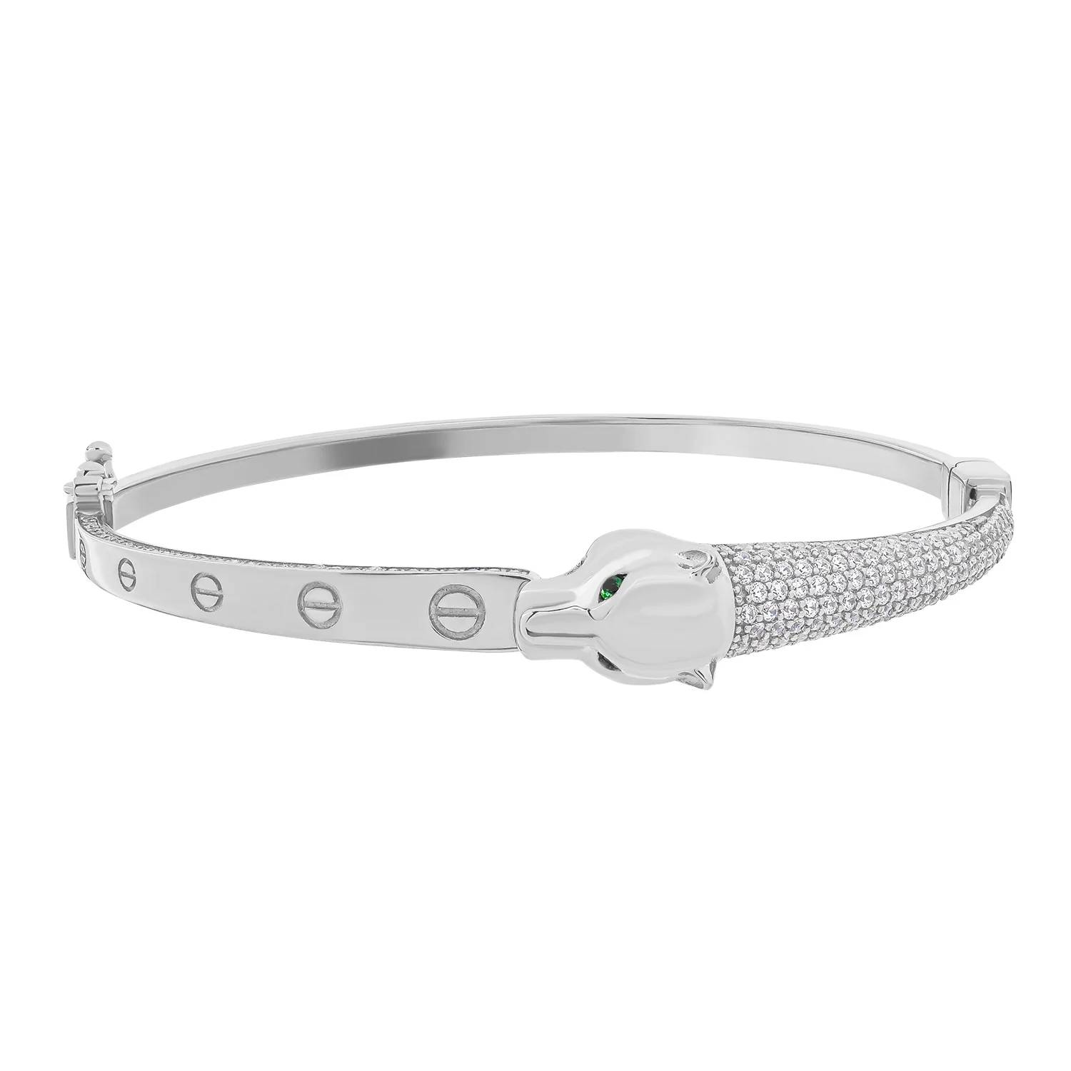 Жорсткий браслет "Пантера Love" з червоного золота з фіанітами - 1747524