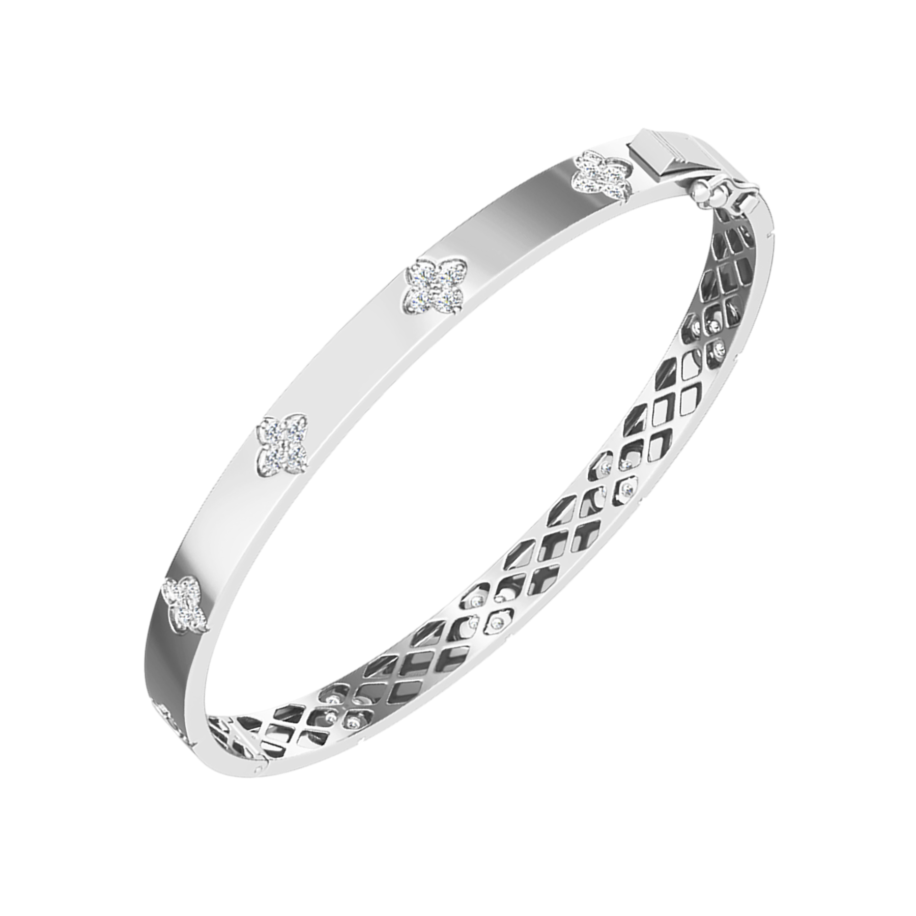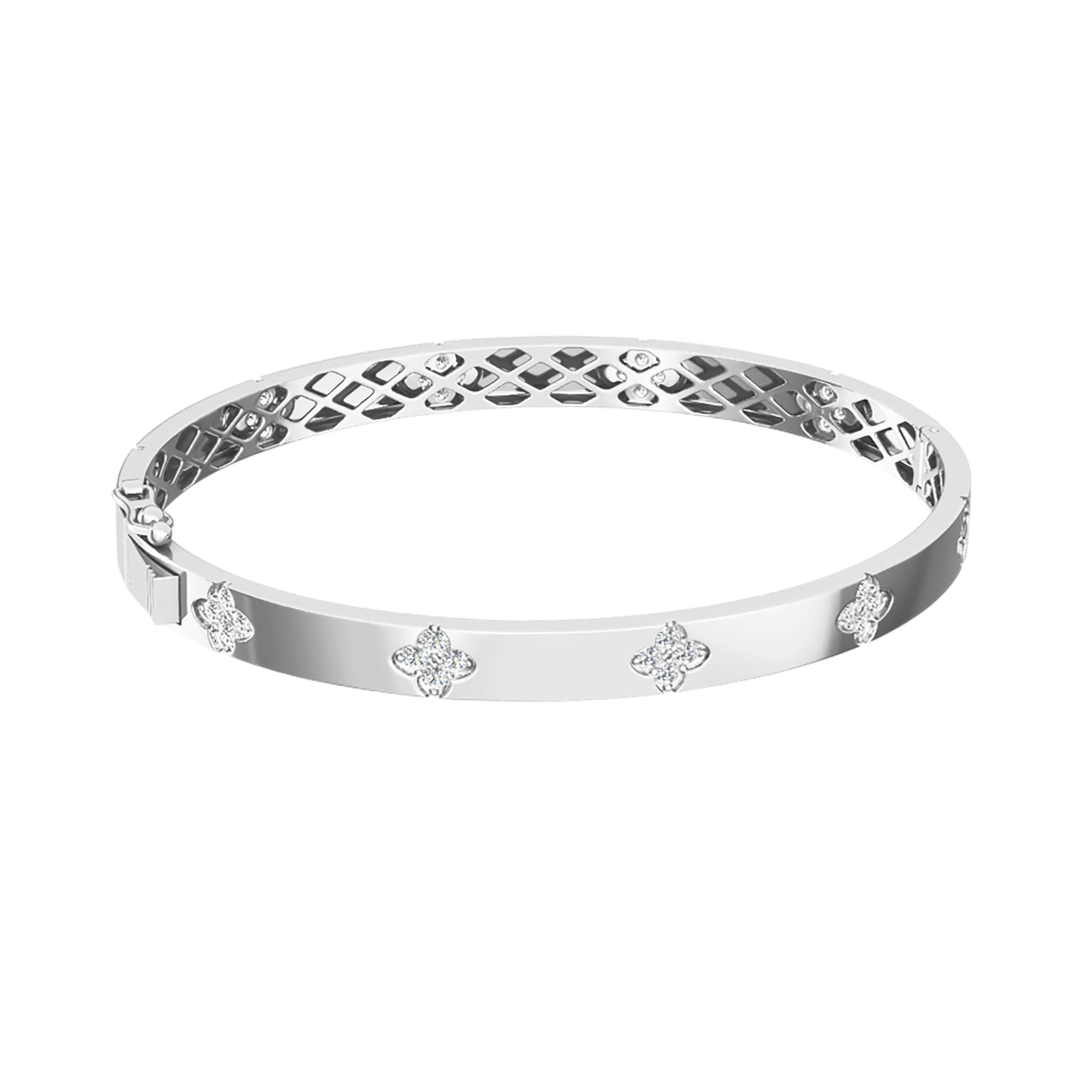 Жорсткий браслет із белого золота "Квіти" з фіанітами - 2134591