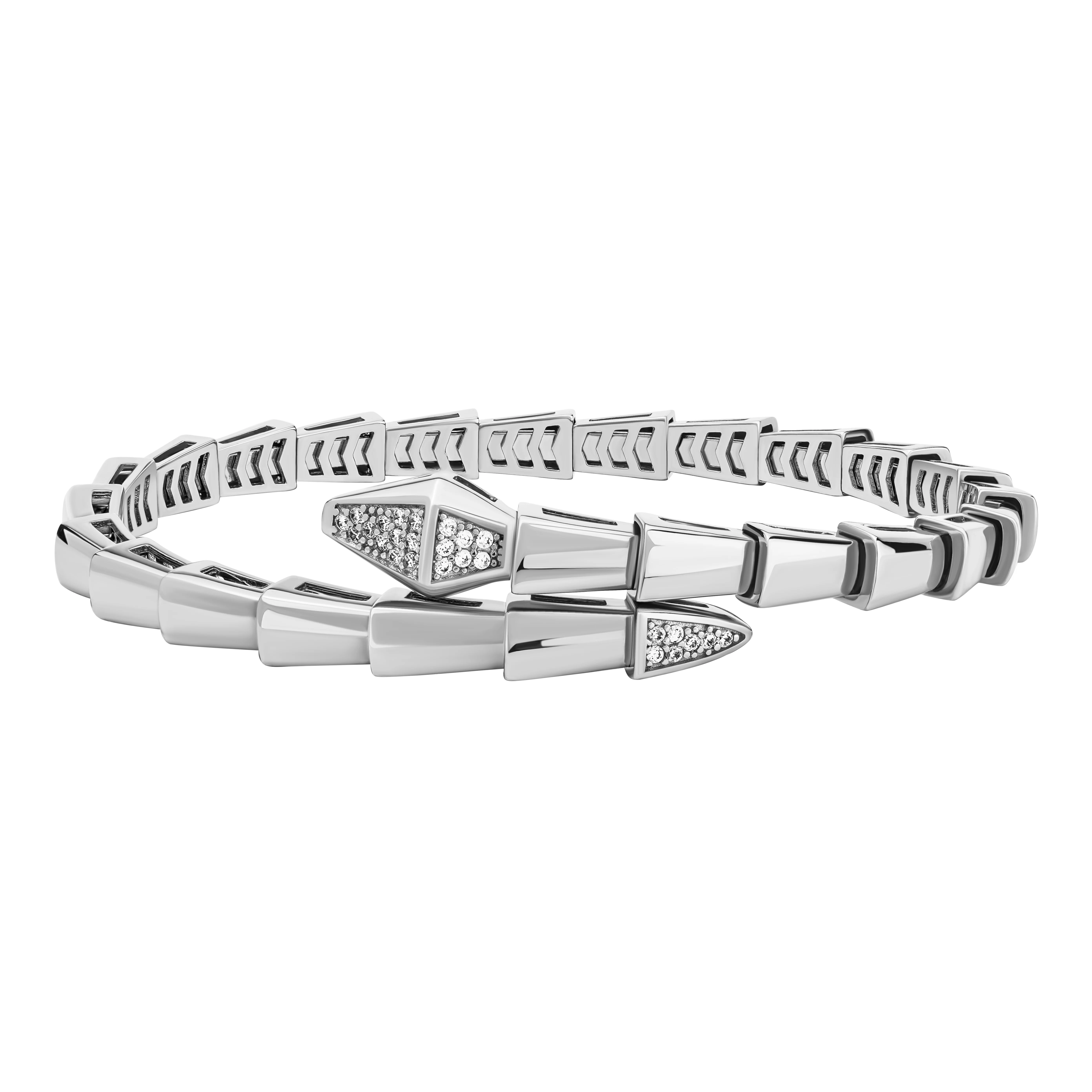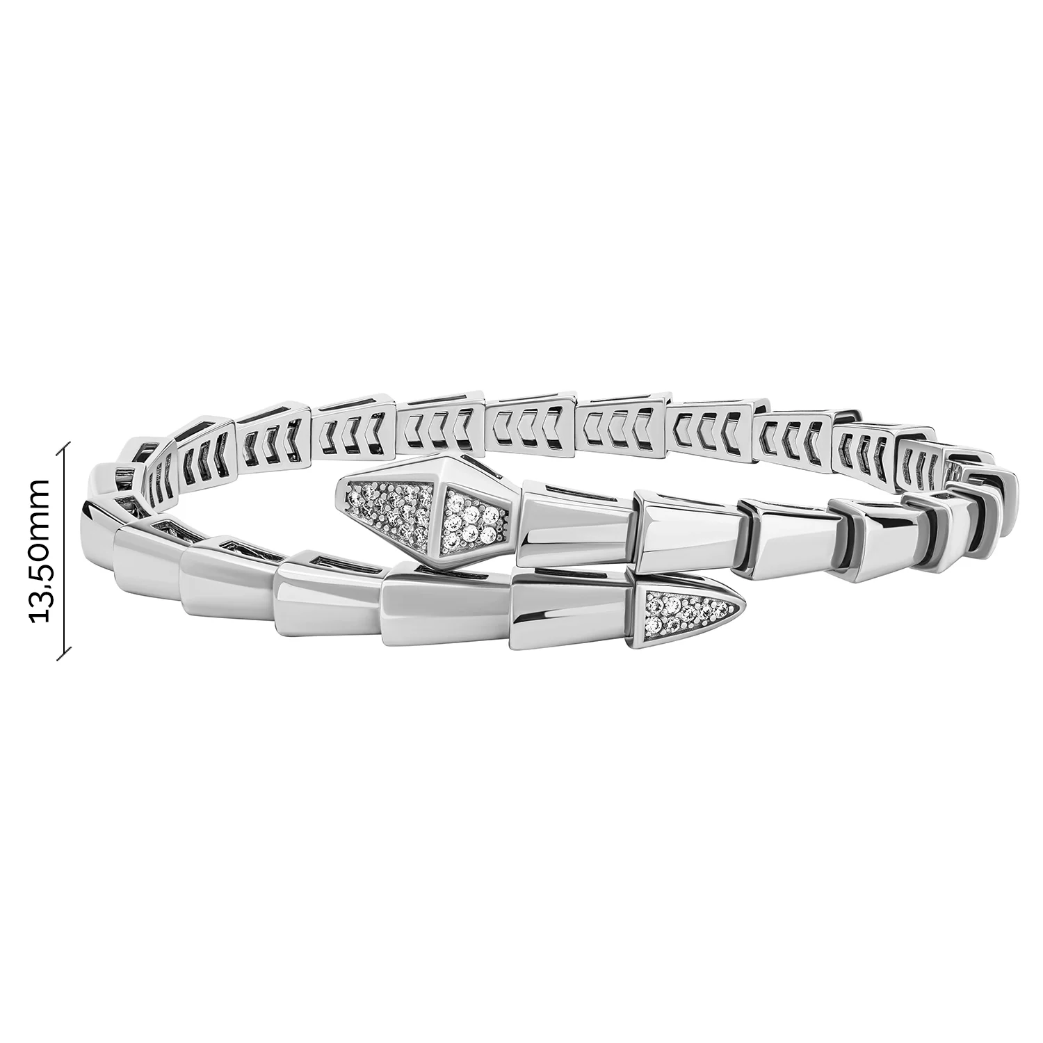 Стильний жорсткий браслет "Змія" з білого золота з фіанітами - 1859351