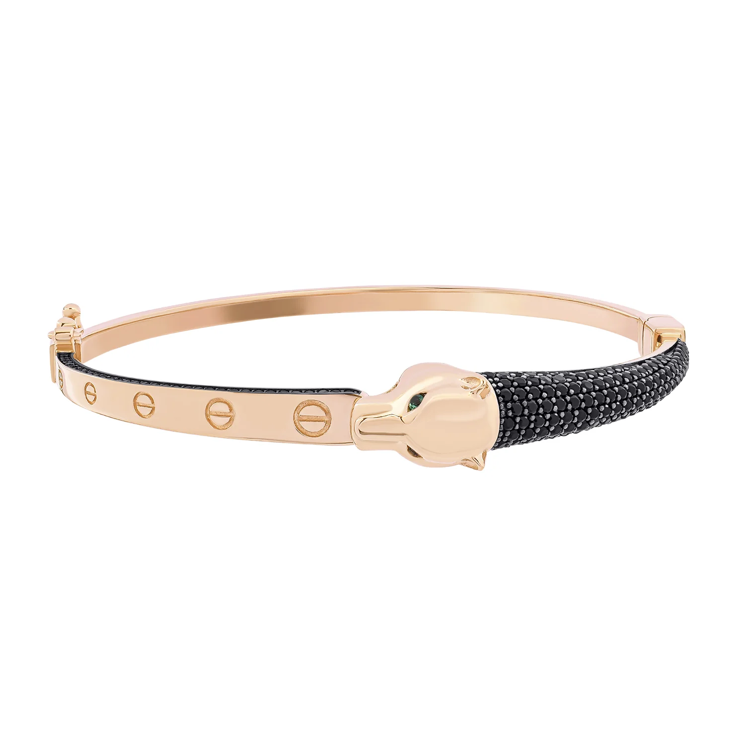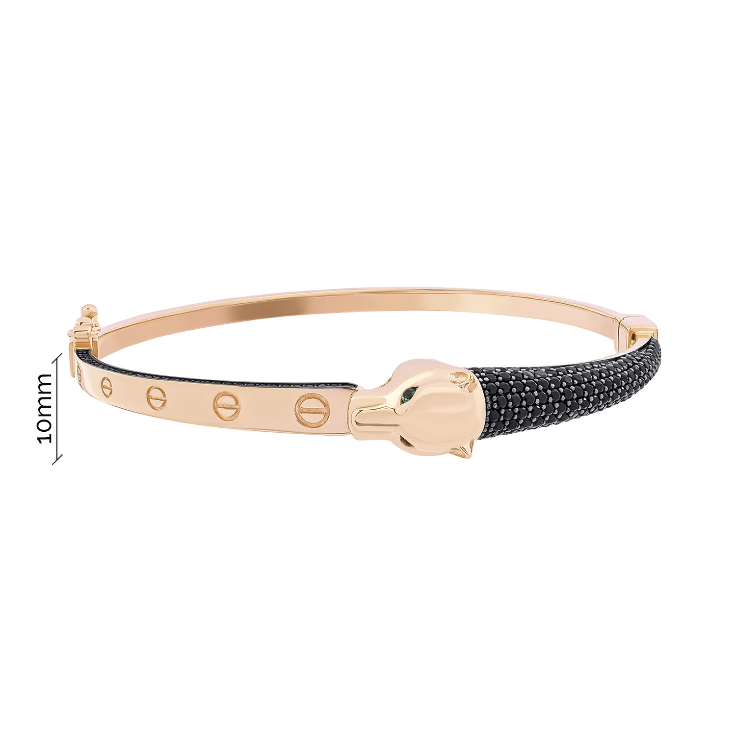 Жорсткий браслет з червоного золота "Пантера" з фіанітами - 1505473