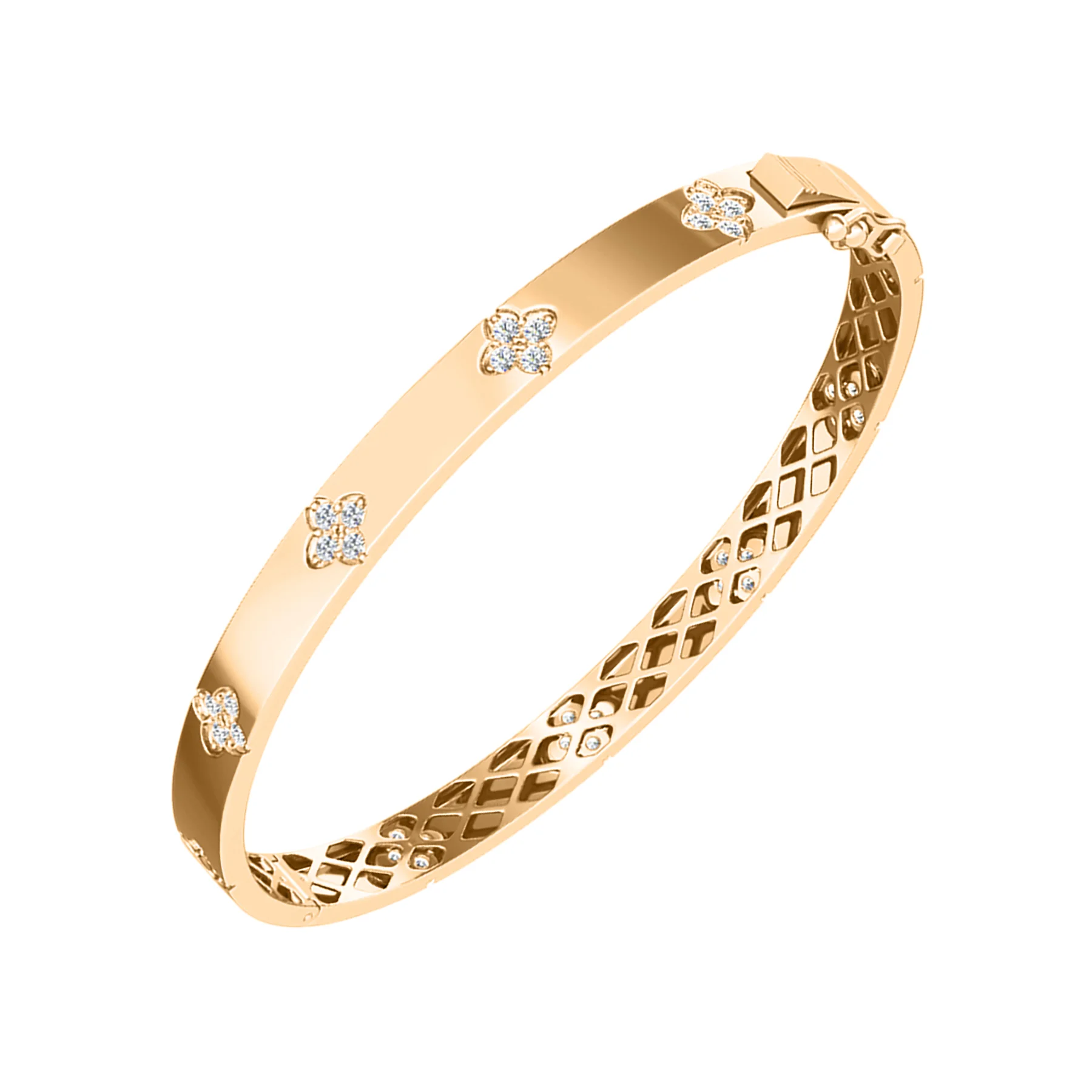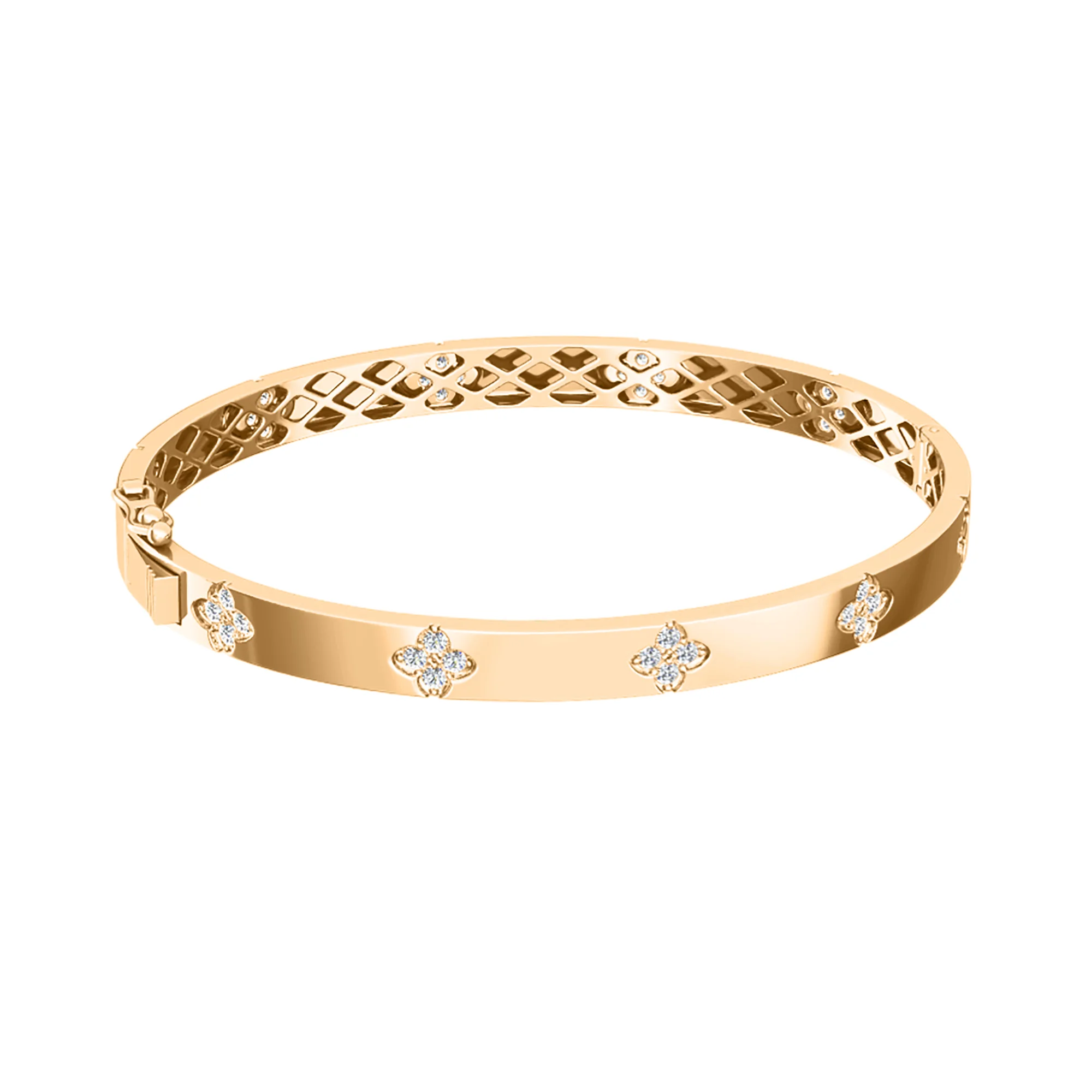 Жорсткий браслет із червоного золота "Квіти" з фіанітами - 2134590
