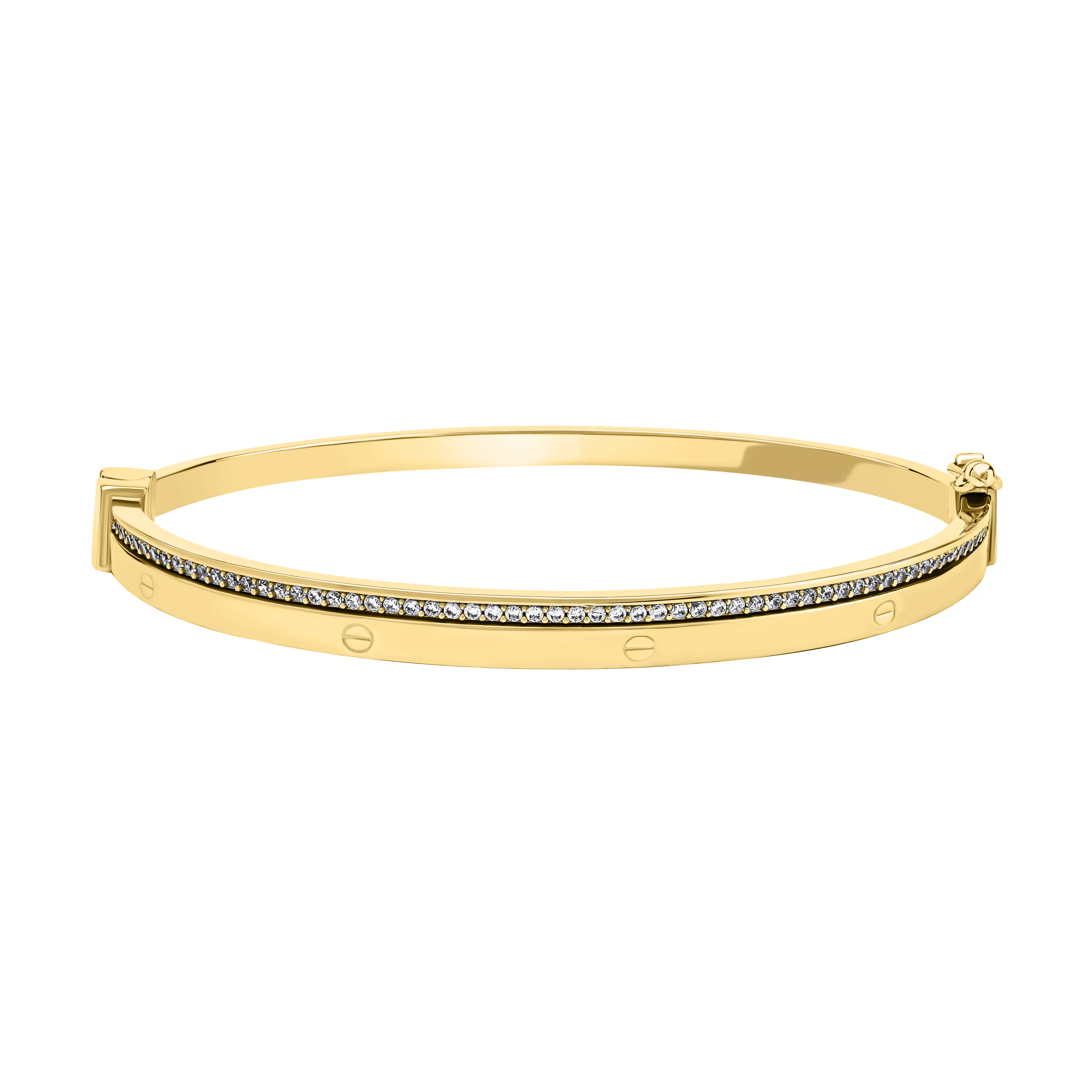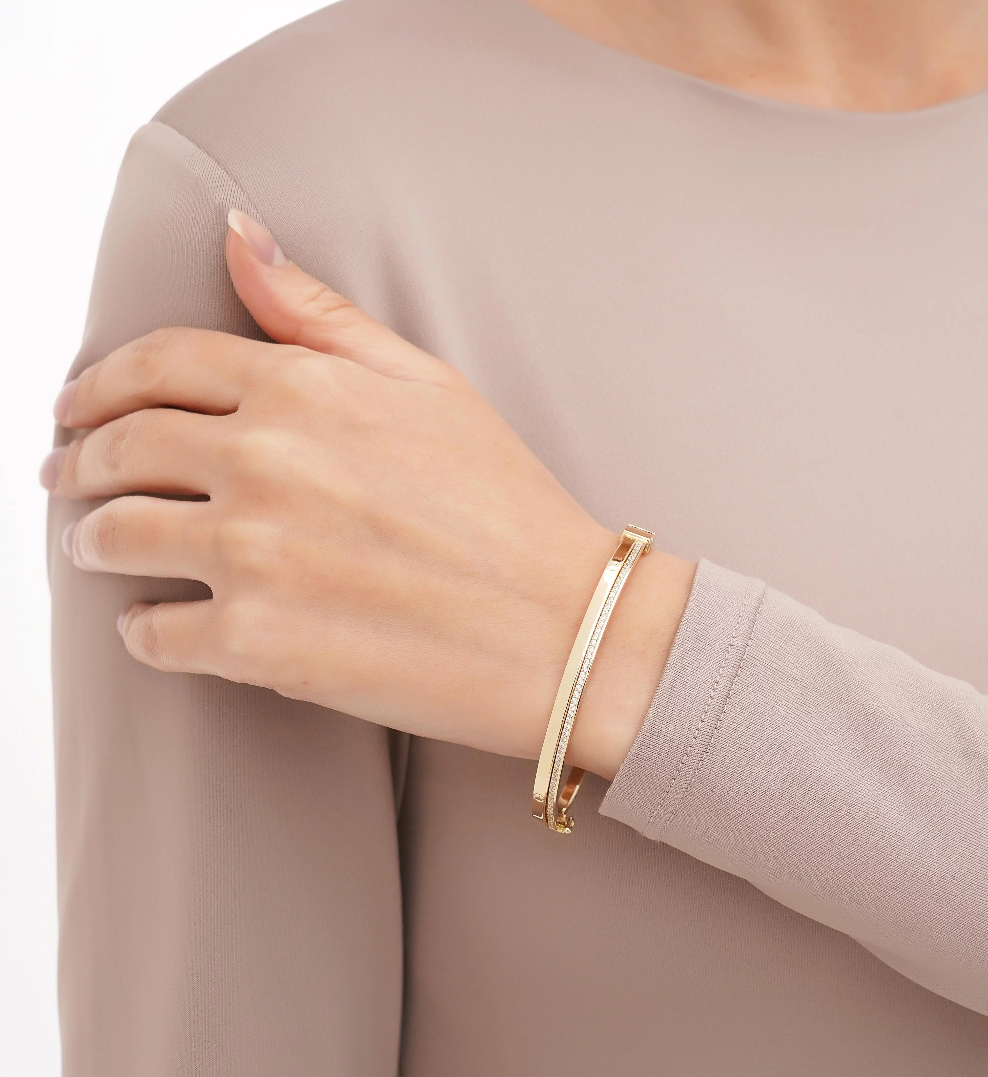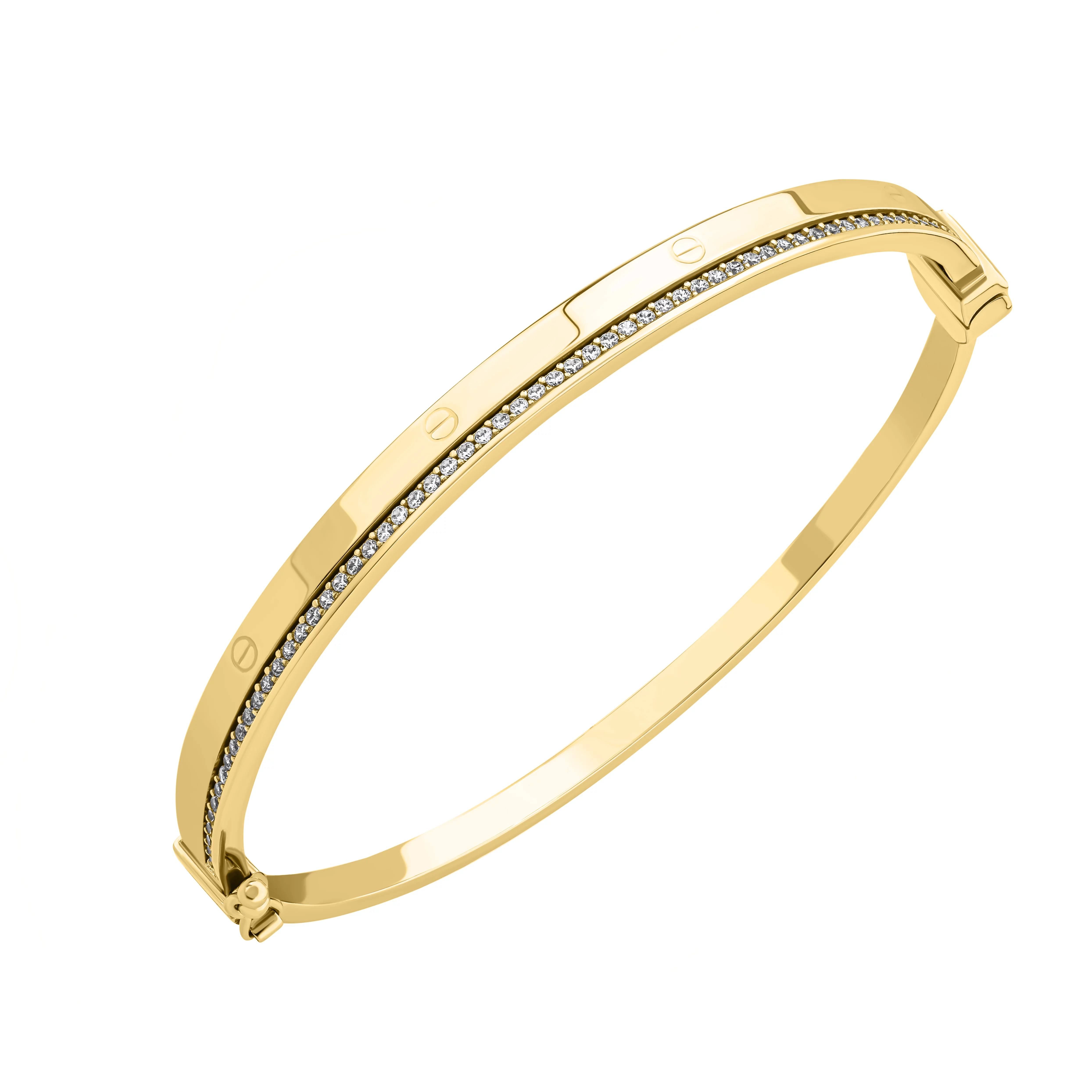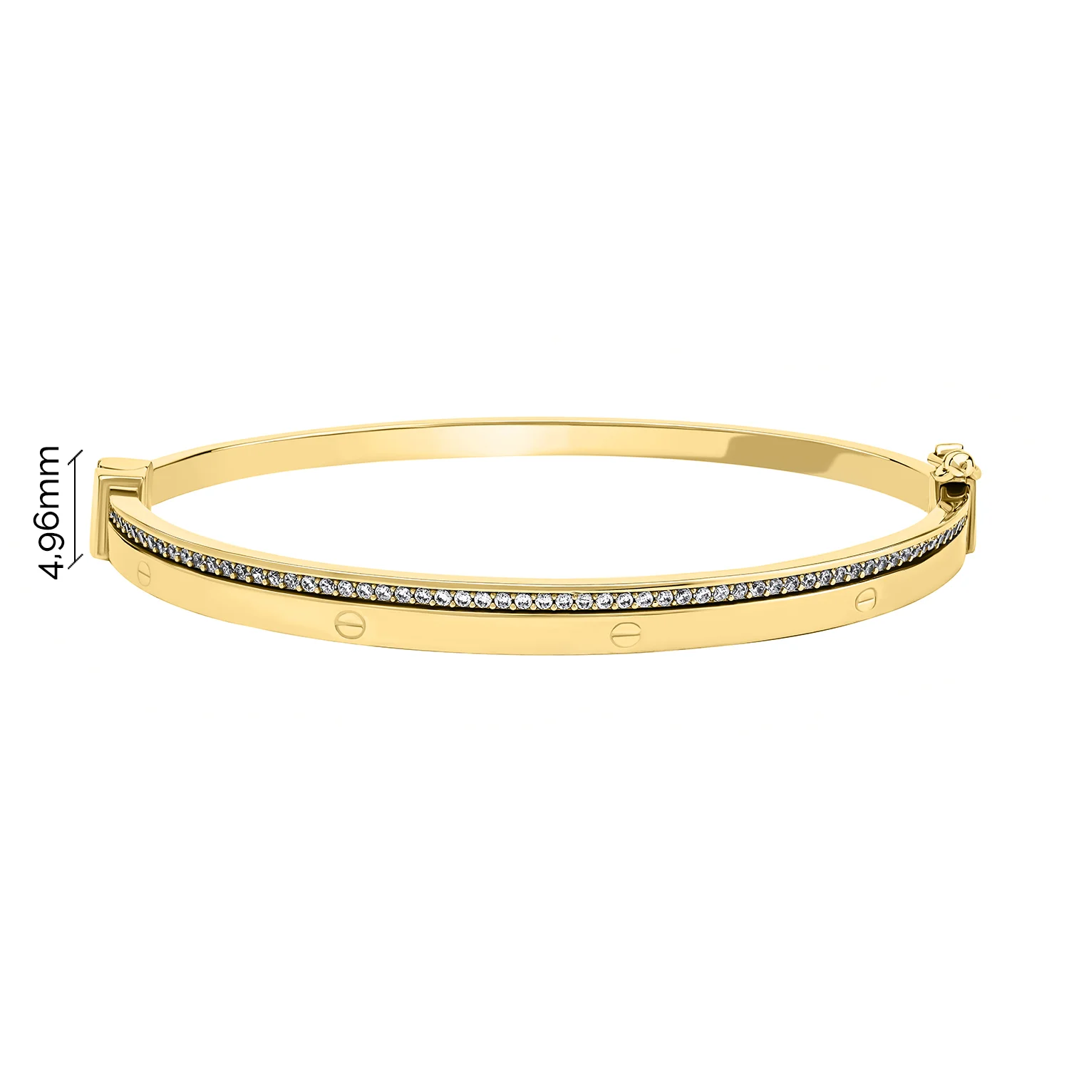 Елегантний жорсткий браслет "Змія" в жовтому золоті з фіанітами - 1861186