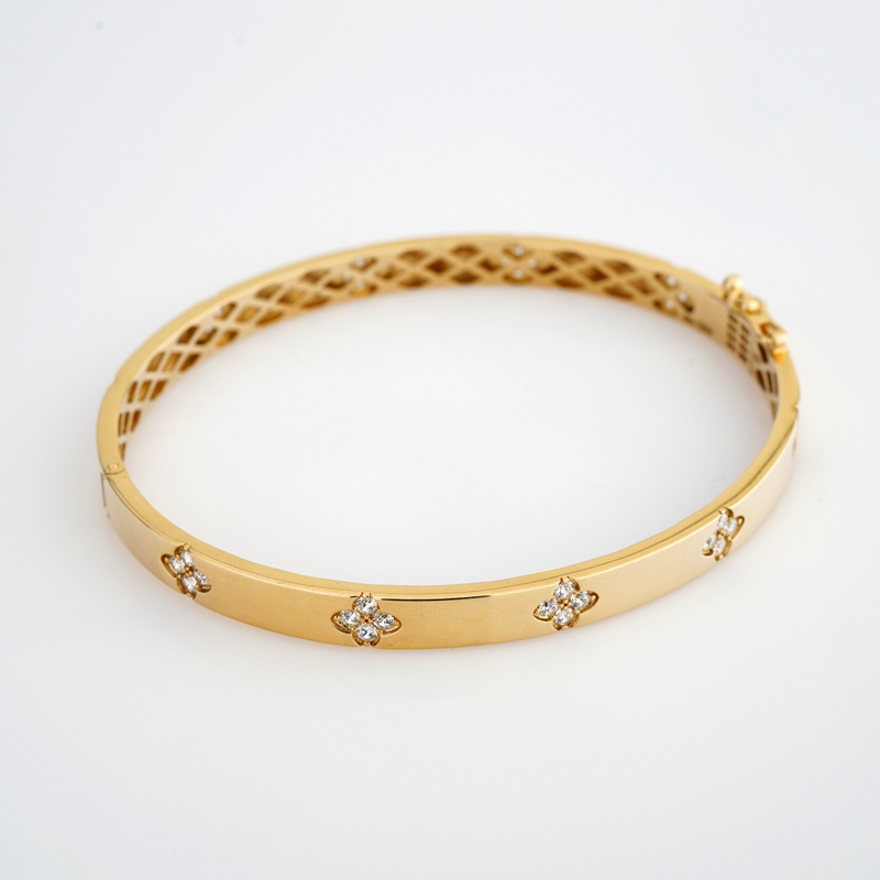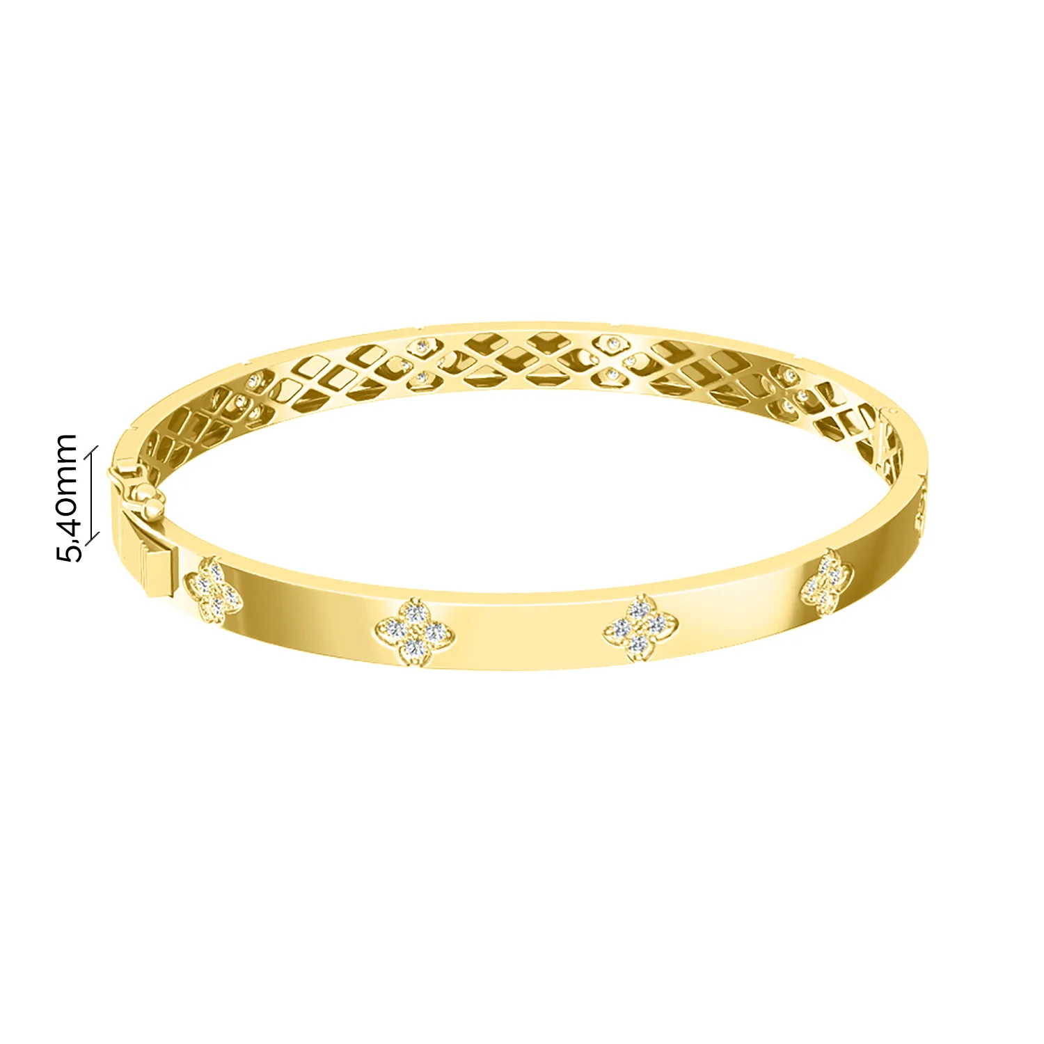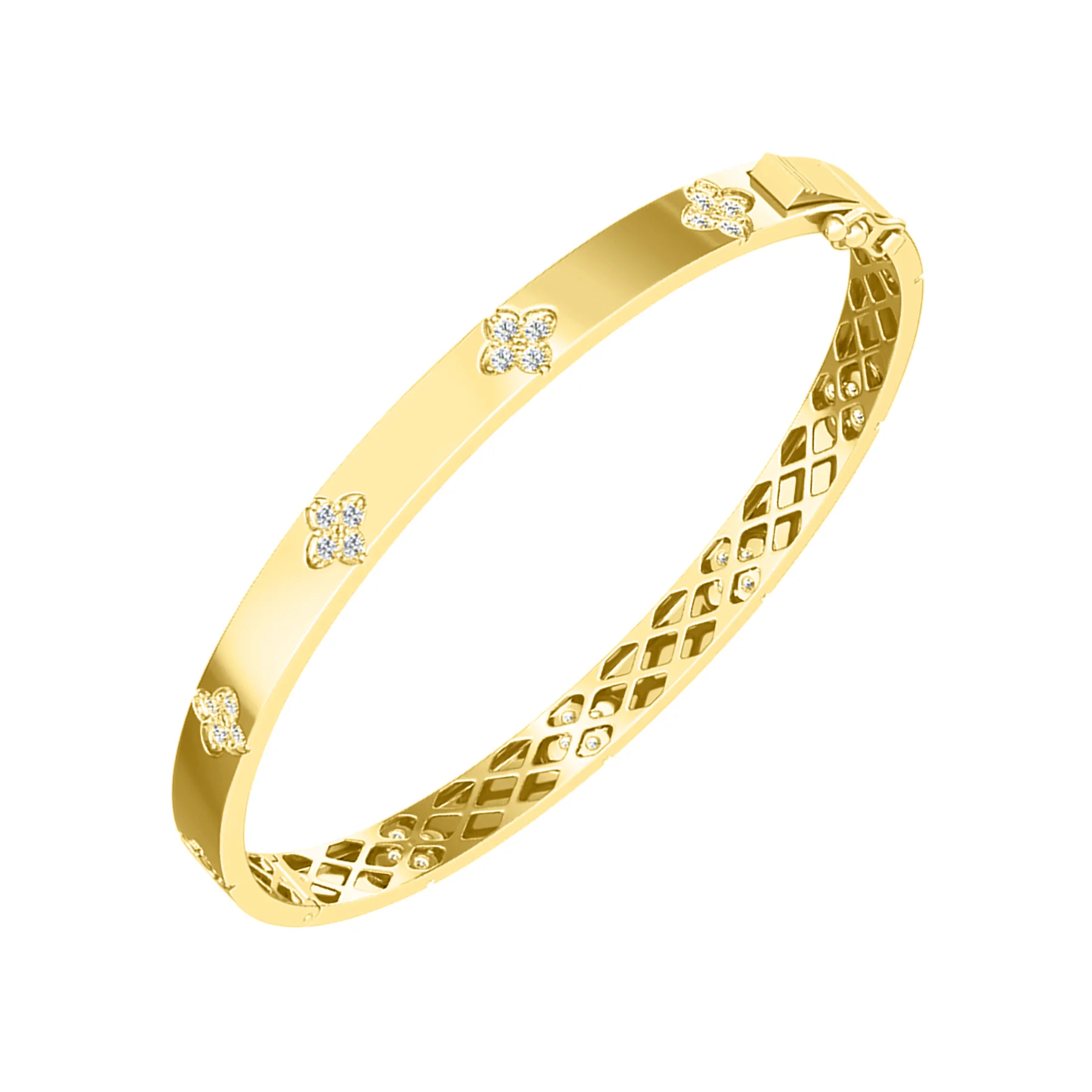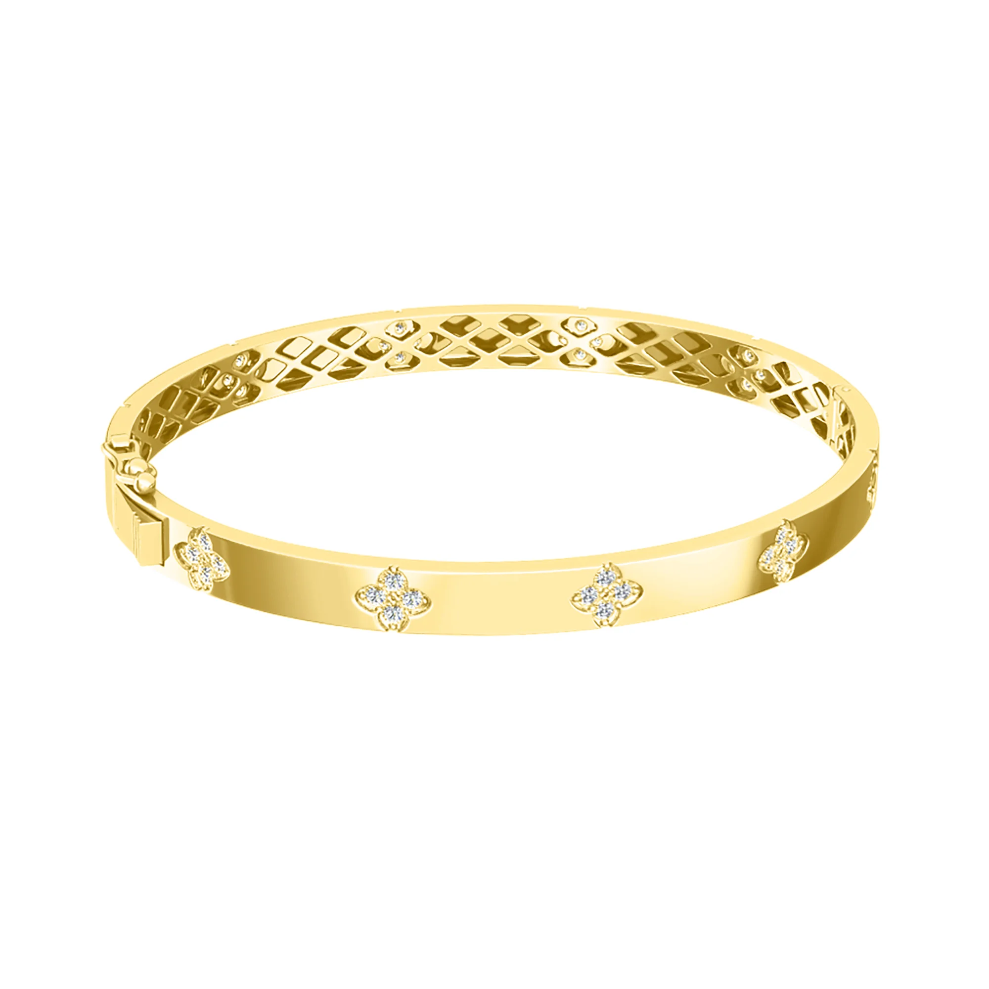 Жорсткий браслет із жовтого золота "Квіти" з фіанітами - 2134592