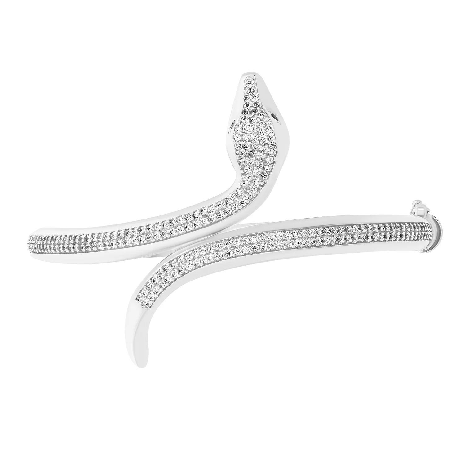 Жорсткий браслет "Змія" з білого золота з фіанітами - 1779296