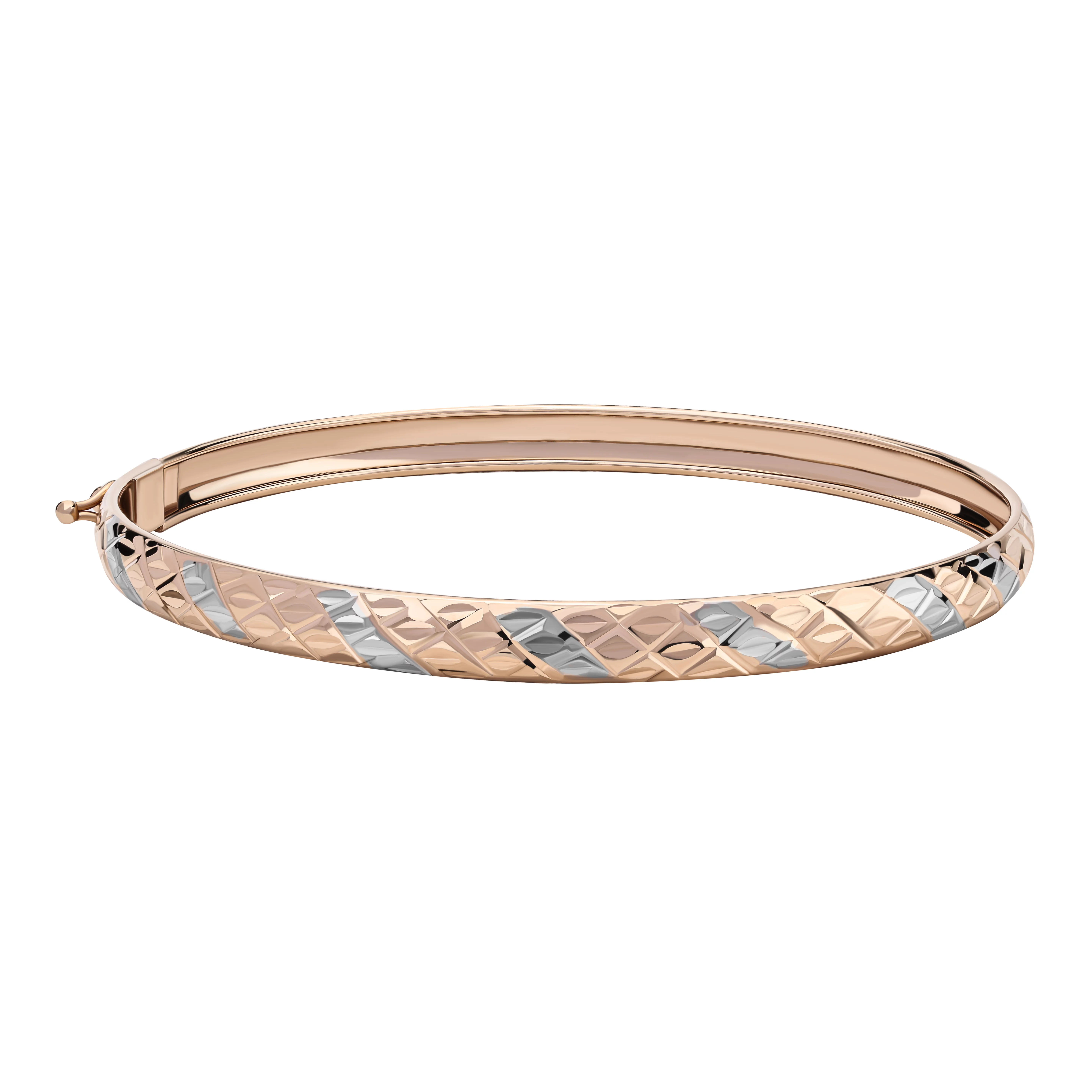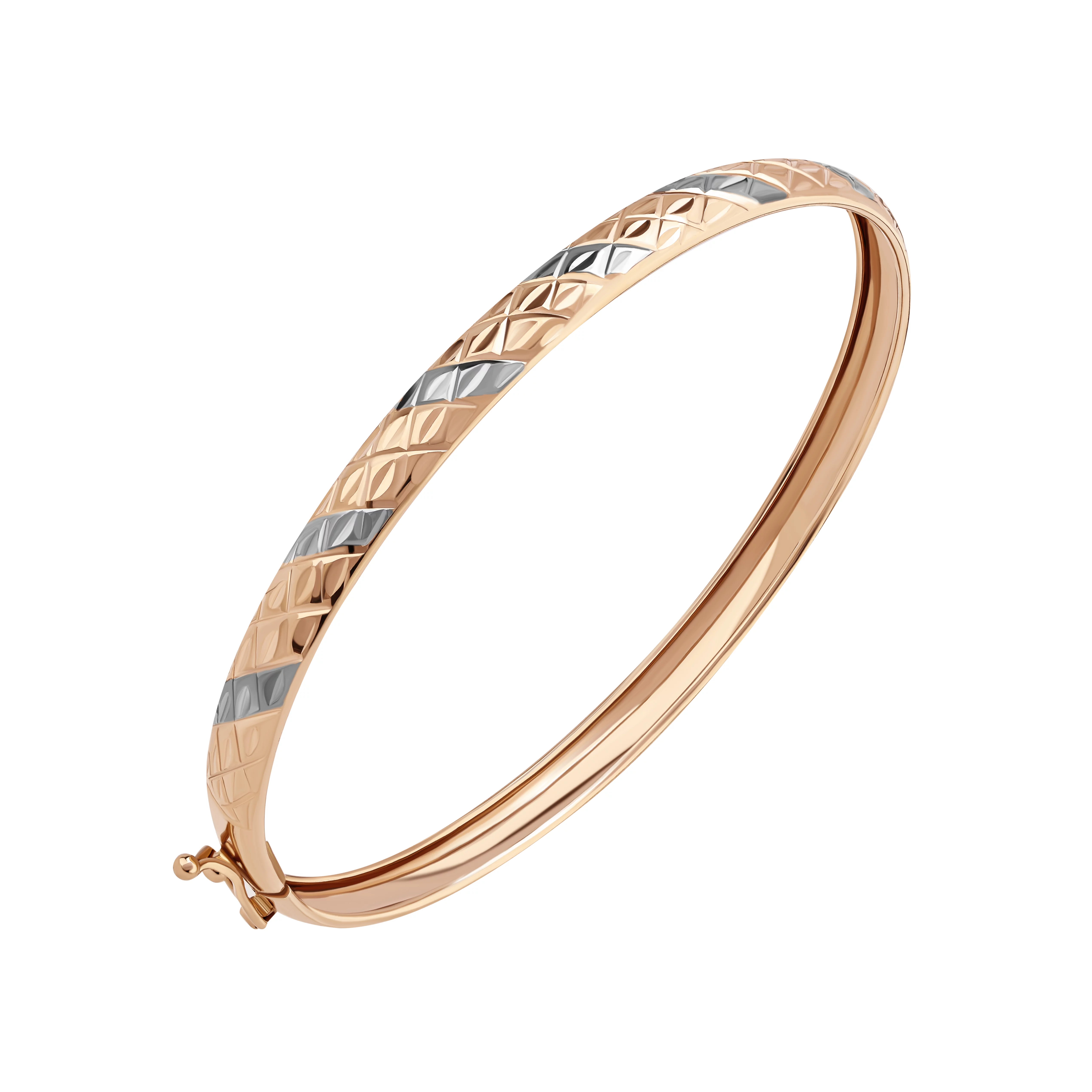 Стильний жорсткий браслет з алмазною гранню в комбінованому золоті - 1859340