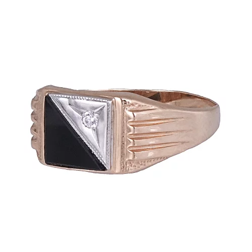 Перстень-печатка в червоному та білому золоті з хрестами та оніксом - 1695213