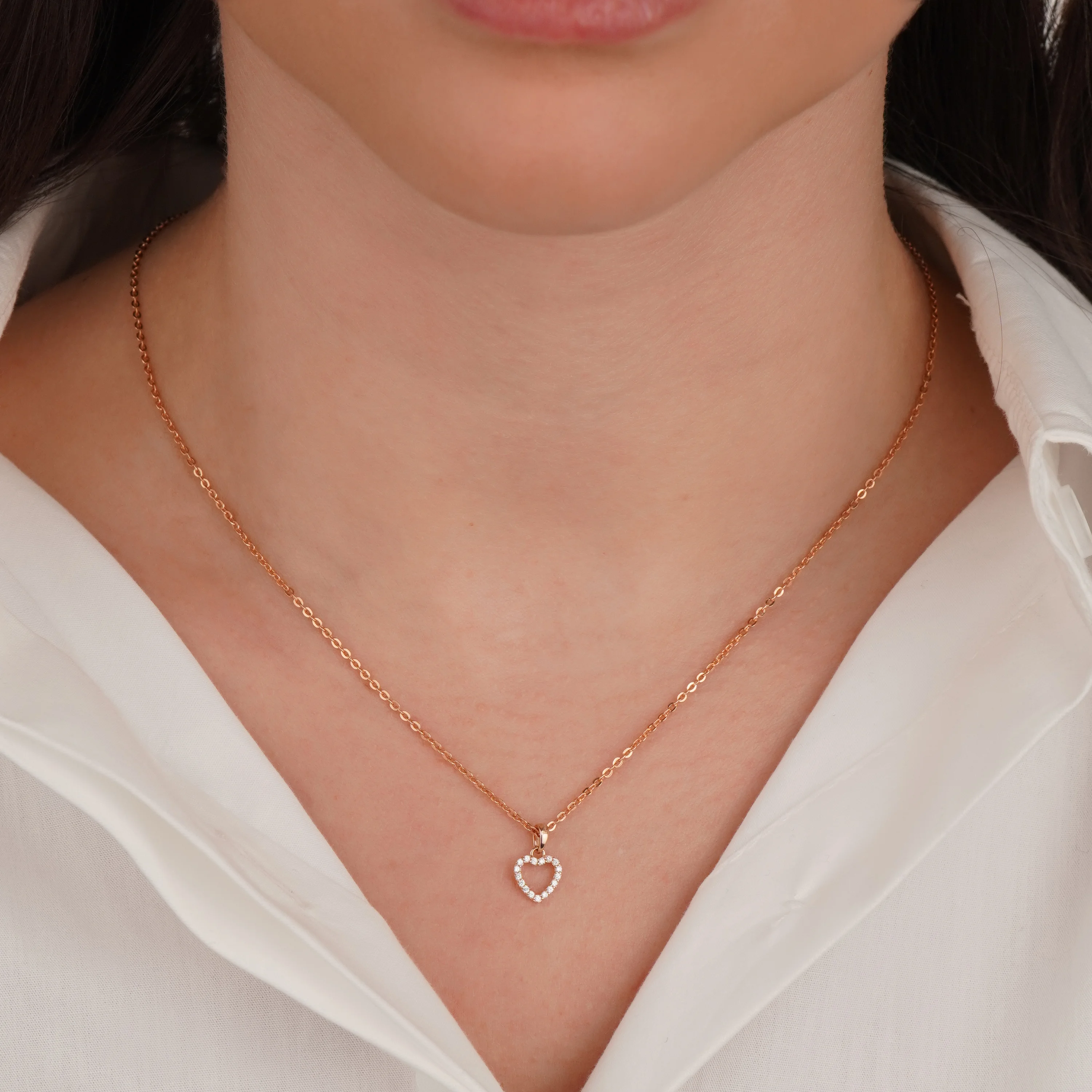 Романтична підвіска із червоного золота 585 проби у формі серця сподобається дівчатам, котрі люблять створювати цікаві образи. Прикрасу можна поєднувати з літніми сукнями, строгими костюмами та повсякденними речами. Дизайн ювелірного виробу виконаний у шикарному стилі: підвіска інкрустована маленькими фіанітами. Камінь високої прозорості та чистоти візуально нагадує діамант. Він чудово заломлює світло, завдяки чому сяйво привертає увагу оточуючих. Прикраса добре поєднується з ланцюжками різної довжини та стилю плетіння.