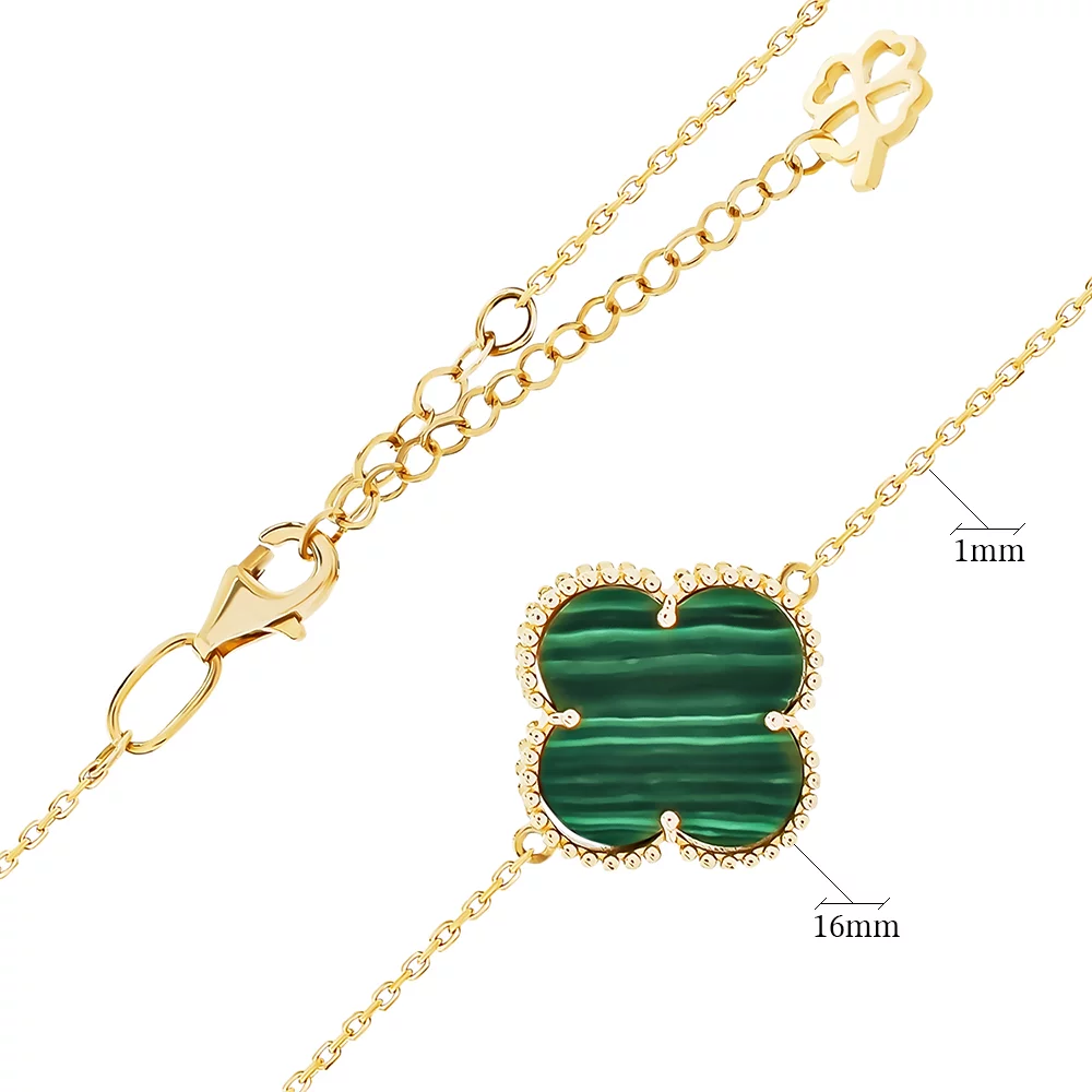 Кольє з червоного золота з підвісом "Конюшина" з малахітом якірне плетіння - 973057
