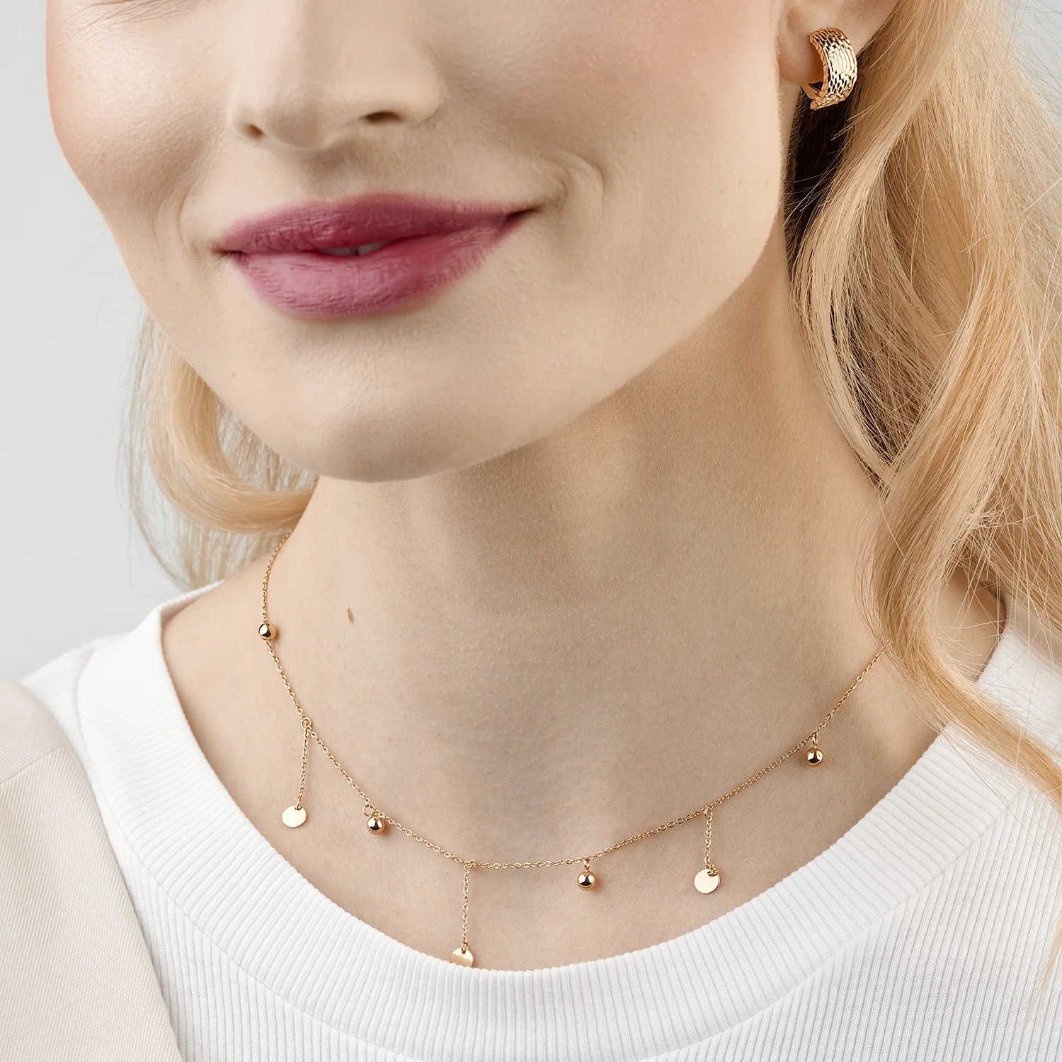Елегантне подвійне кольє "Куля" з підвісами в червоному золоті та з якірним плетінням - 1858417