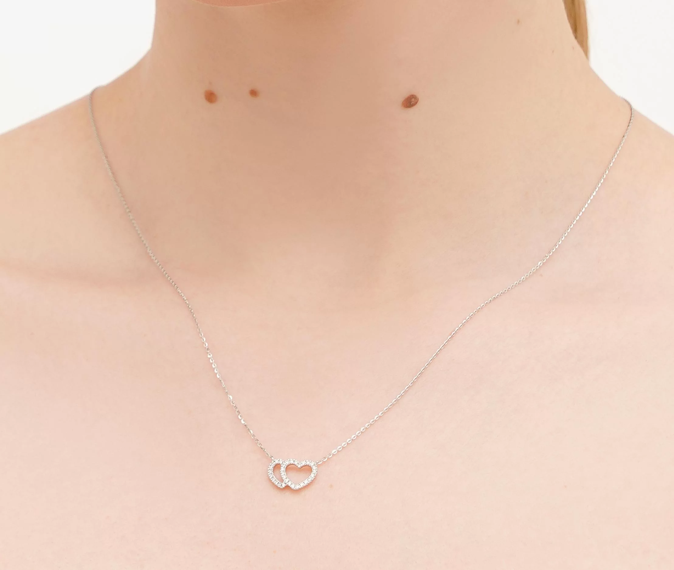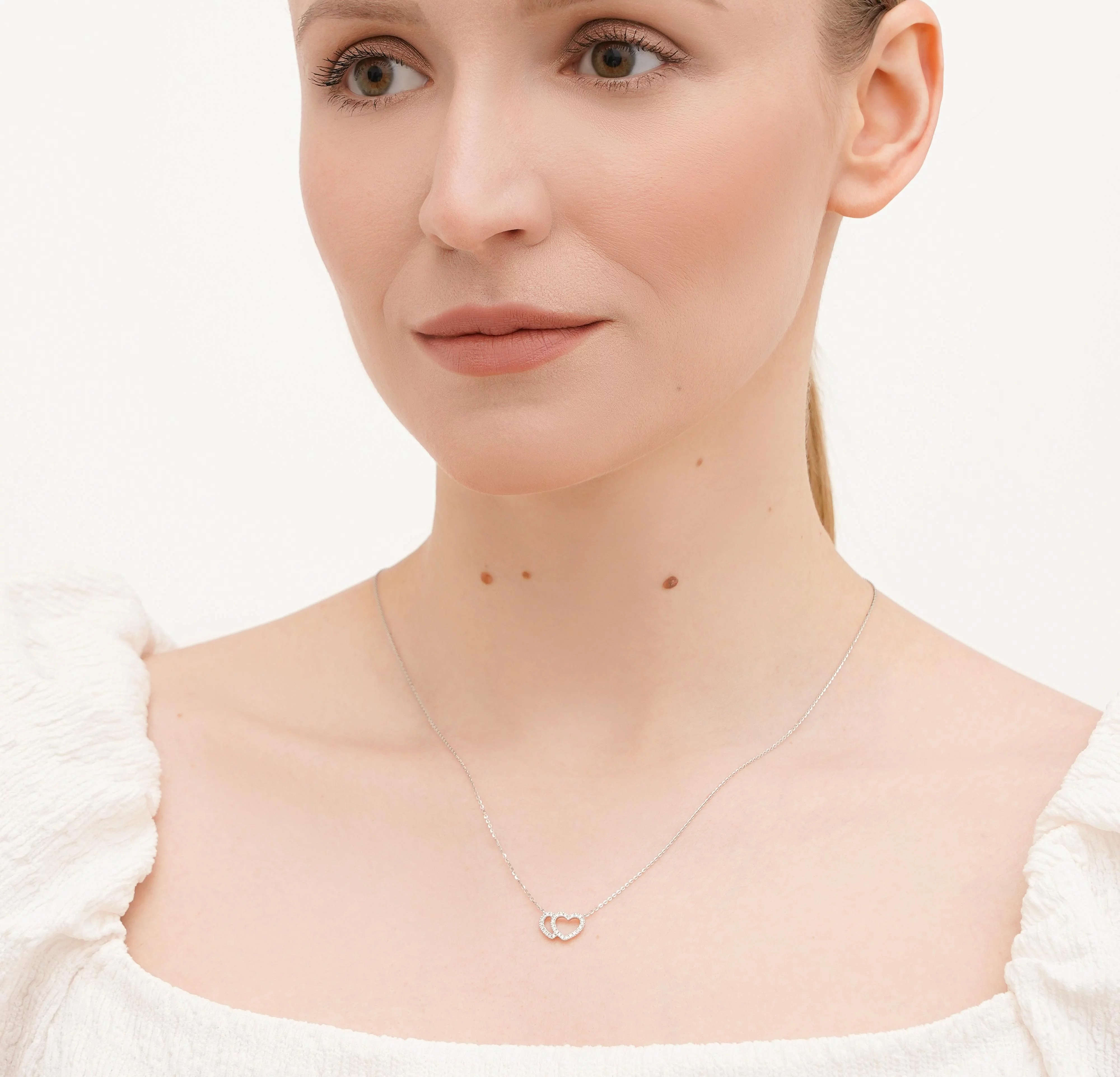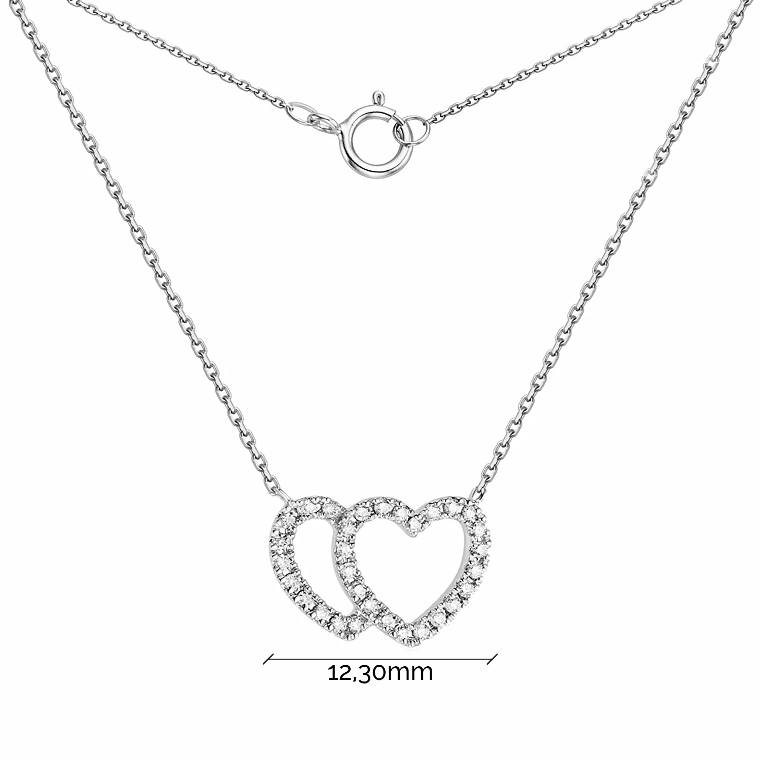 Ланцюжок з підвіскою з білого золота "Сердечка з танцюючим діамантом" плетіння якірне - 1531367
