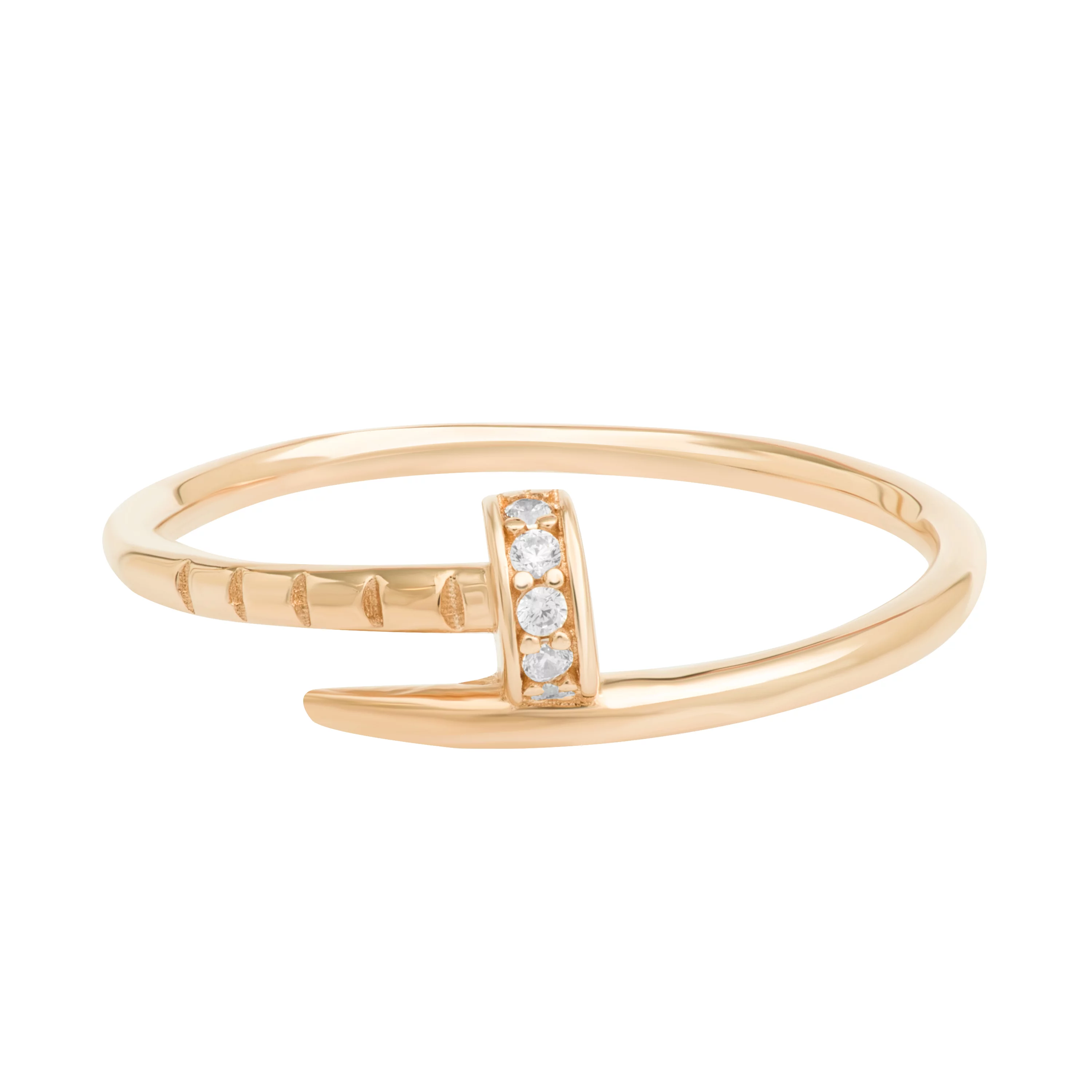 Широка каблучка в червоному золоті з фіанітами "Переплетіння" - 1715889