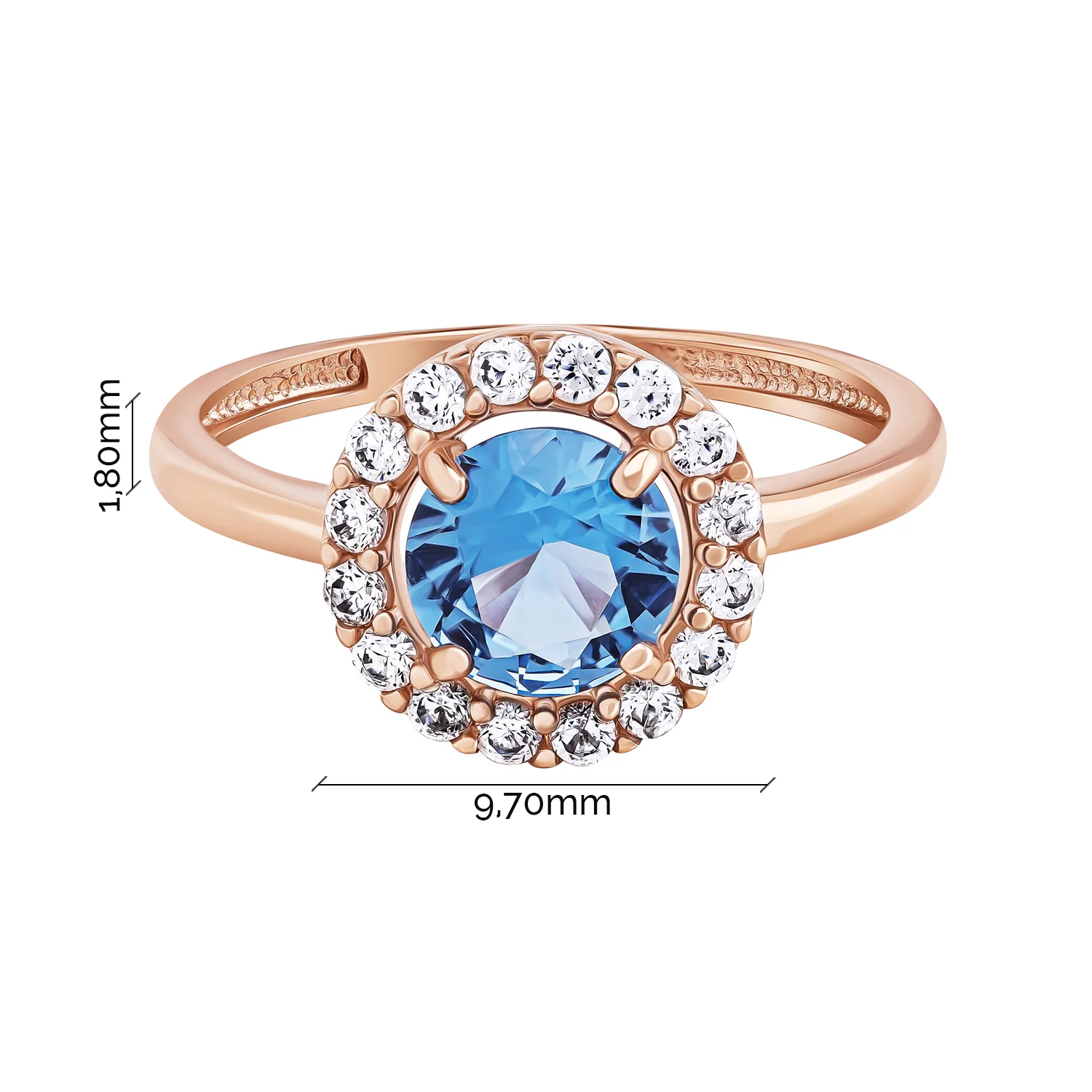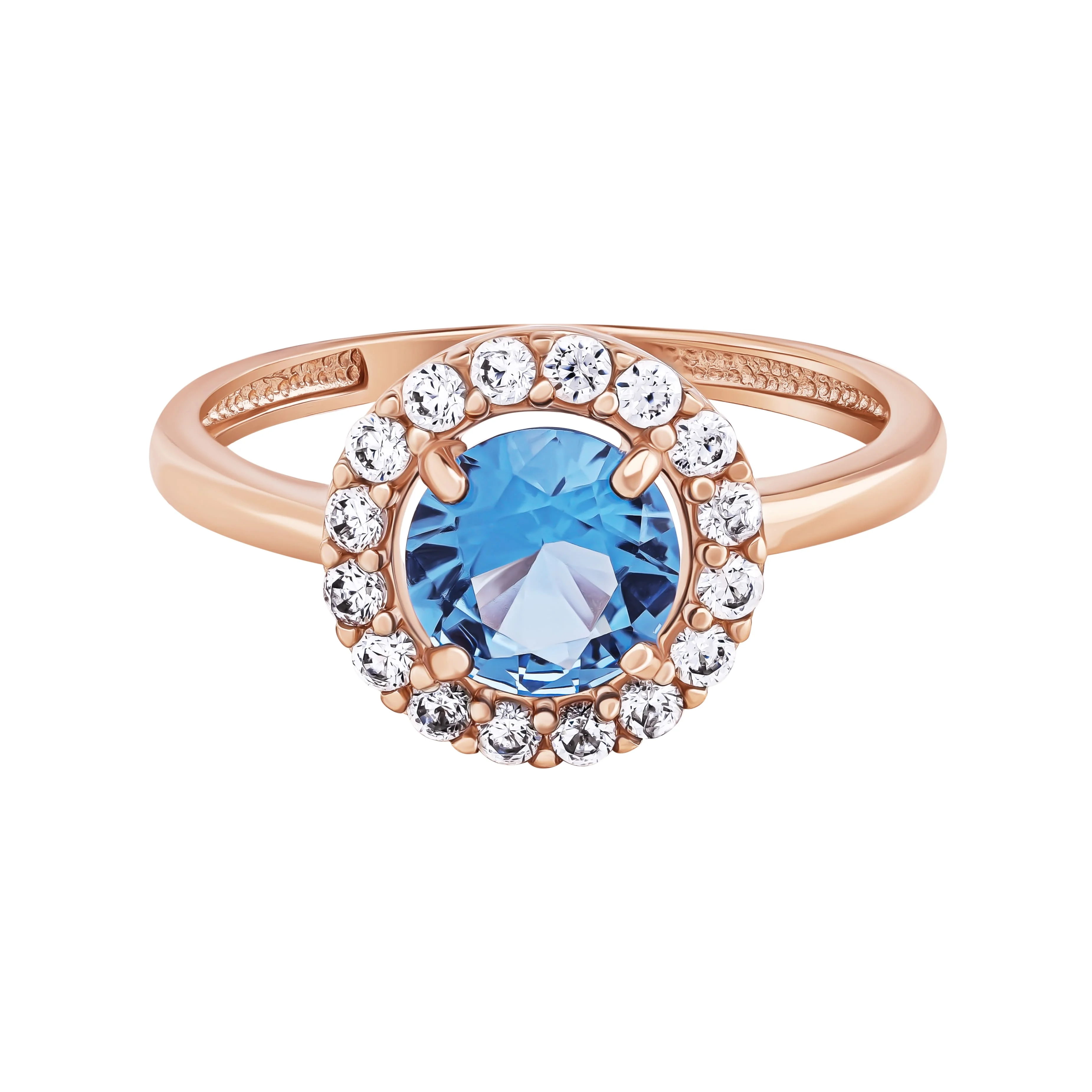 Каблучка з червоного золота з топазом та фіанітами - 2082585