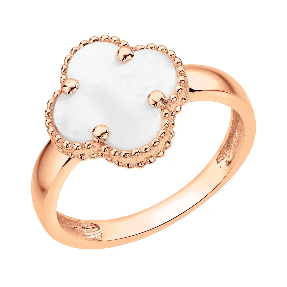 Каблучка "Конюшина" з перламутром у червоному золоті - 1514986