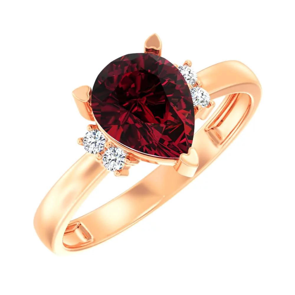 Каблучка з гранатом і фіанітами у червоному золоті - 1514318