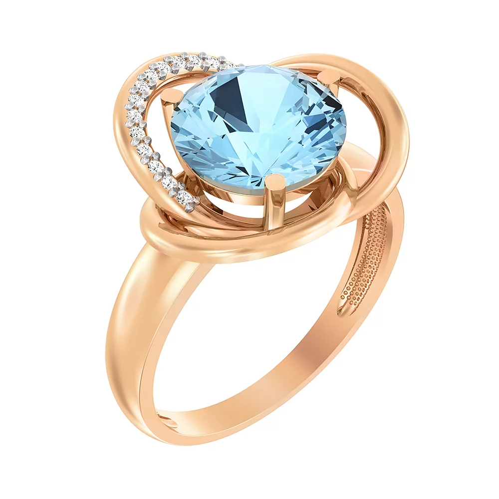 Золота каблучка з кварцем і фіанітами - 1513707