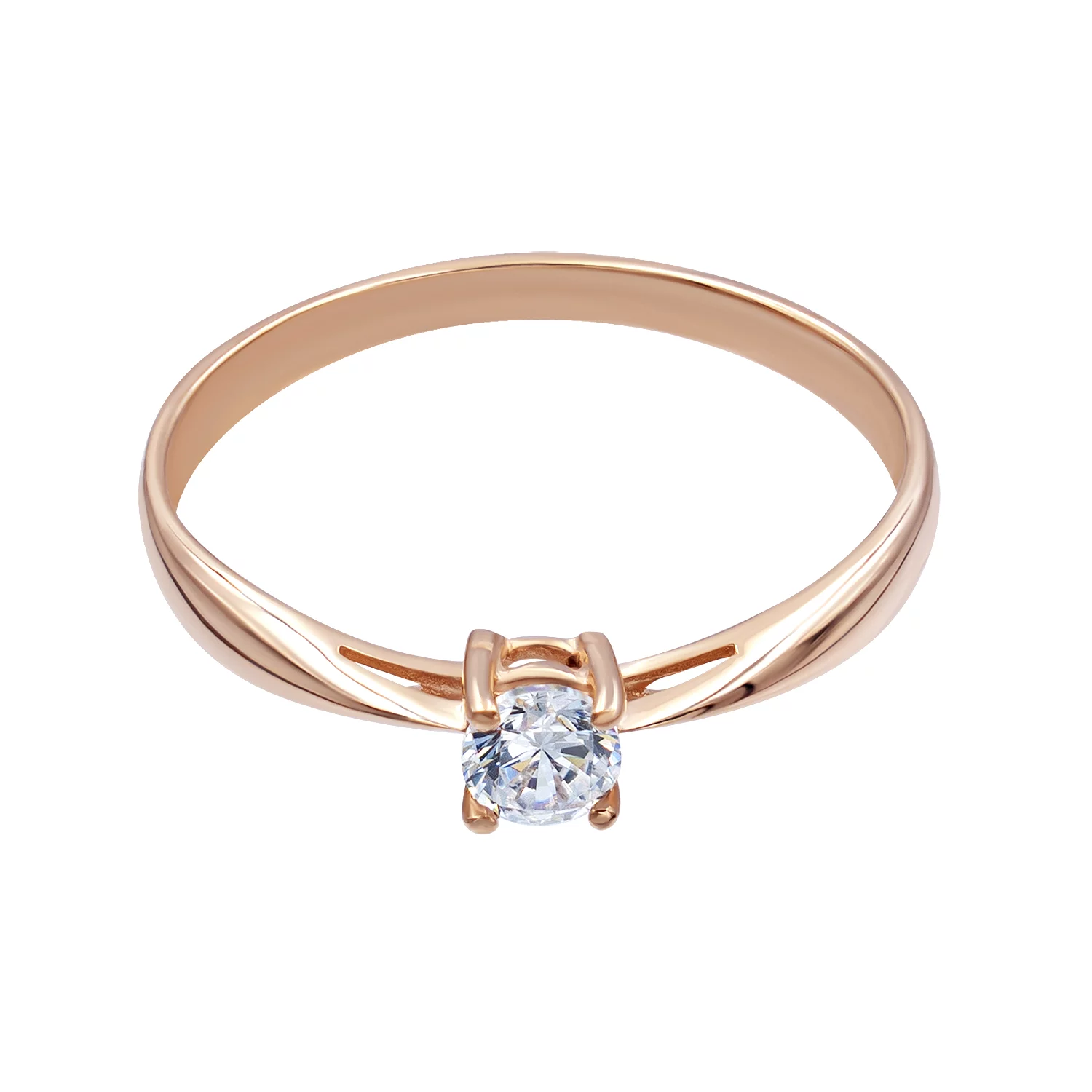 Каблучку з червоного золота, прикрашену цирконієм, оцінять шанувальниці вишуканої розкоші. Блискучий камінь за характеристиками нагадує алмаз, заломлює промені, що потрапляють на нього, гіпнотизує та зачаровує грою світла. Ніжна витончена прикраса стане розкішним подарунком на повноліття чи на інше свято. Каблучка виготовлена з міцного матеріалу — червоного золота 585 проби, а кріплення крапанами надійно утримує напівдорогоцінний камінь на місці. Завдяки класичному стилю поєднується з іншими прикрасами та гармонійно доповнить будь-яке вбрання.