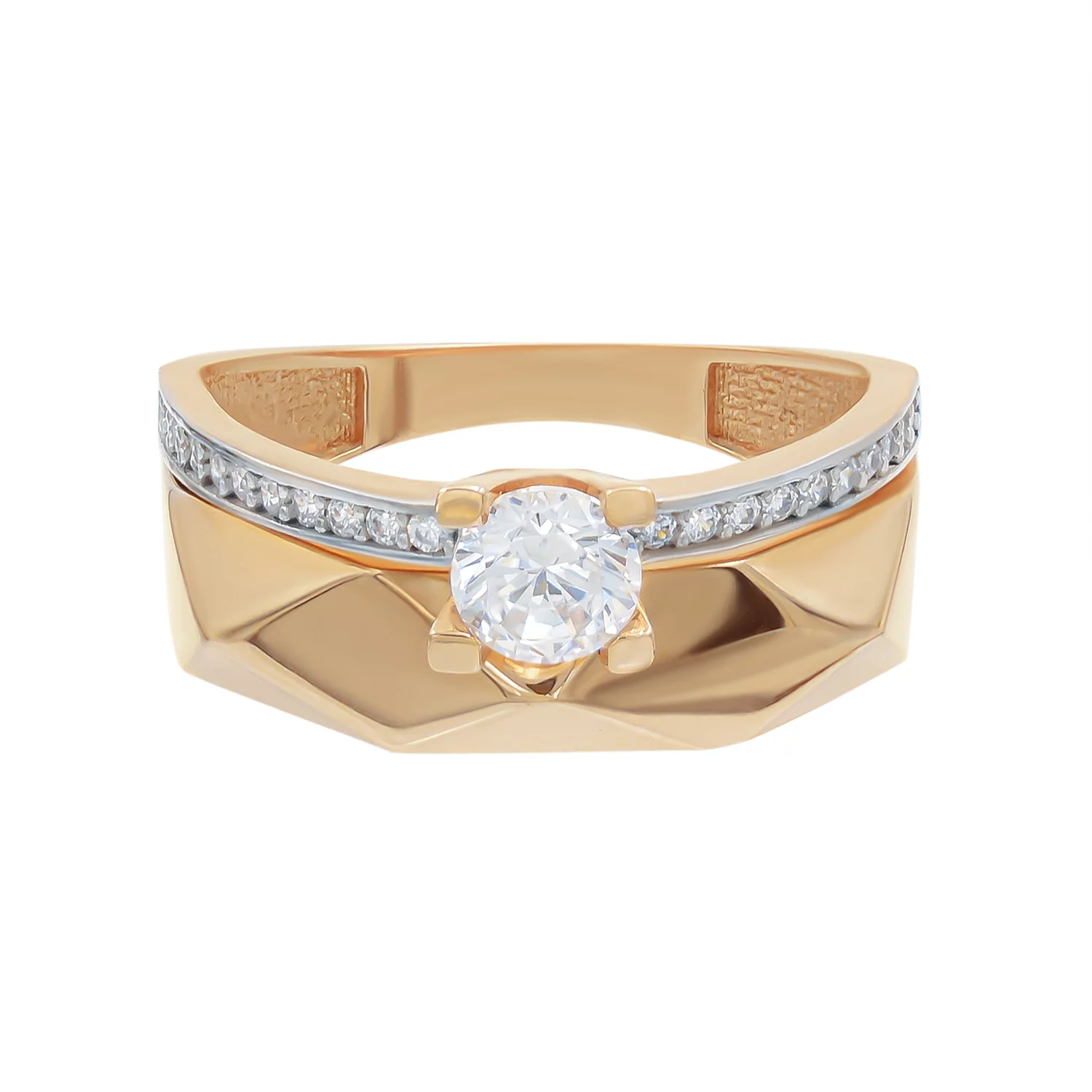 Каблучка "Грані" з червоного золота с фіанітом - 538760