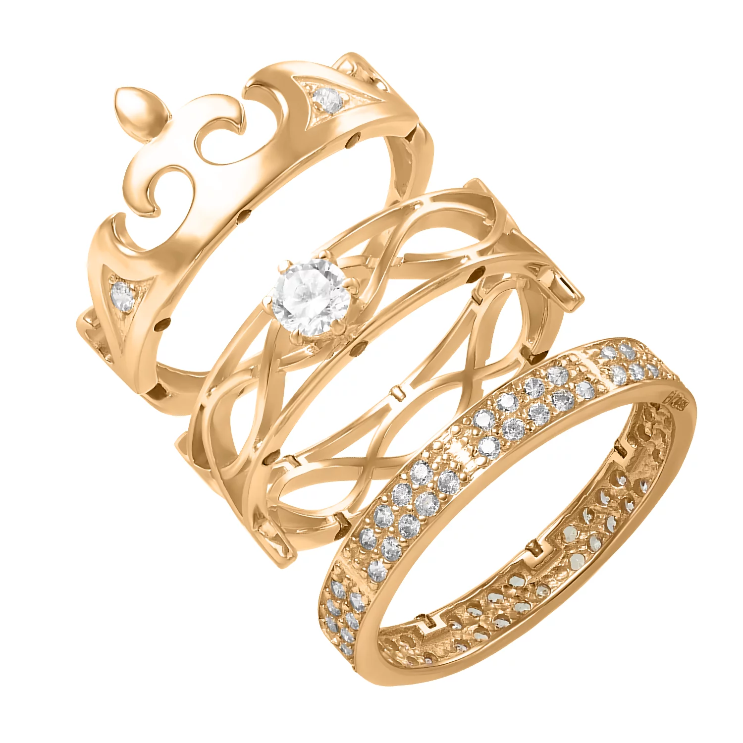 Золота каблучка з фіанітами Корона - 494922