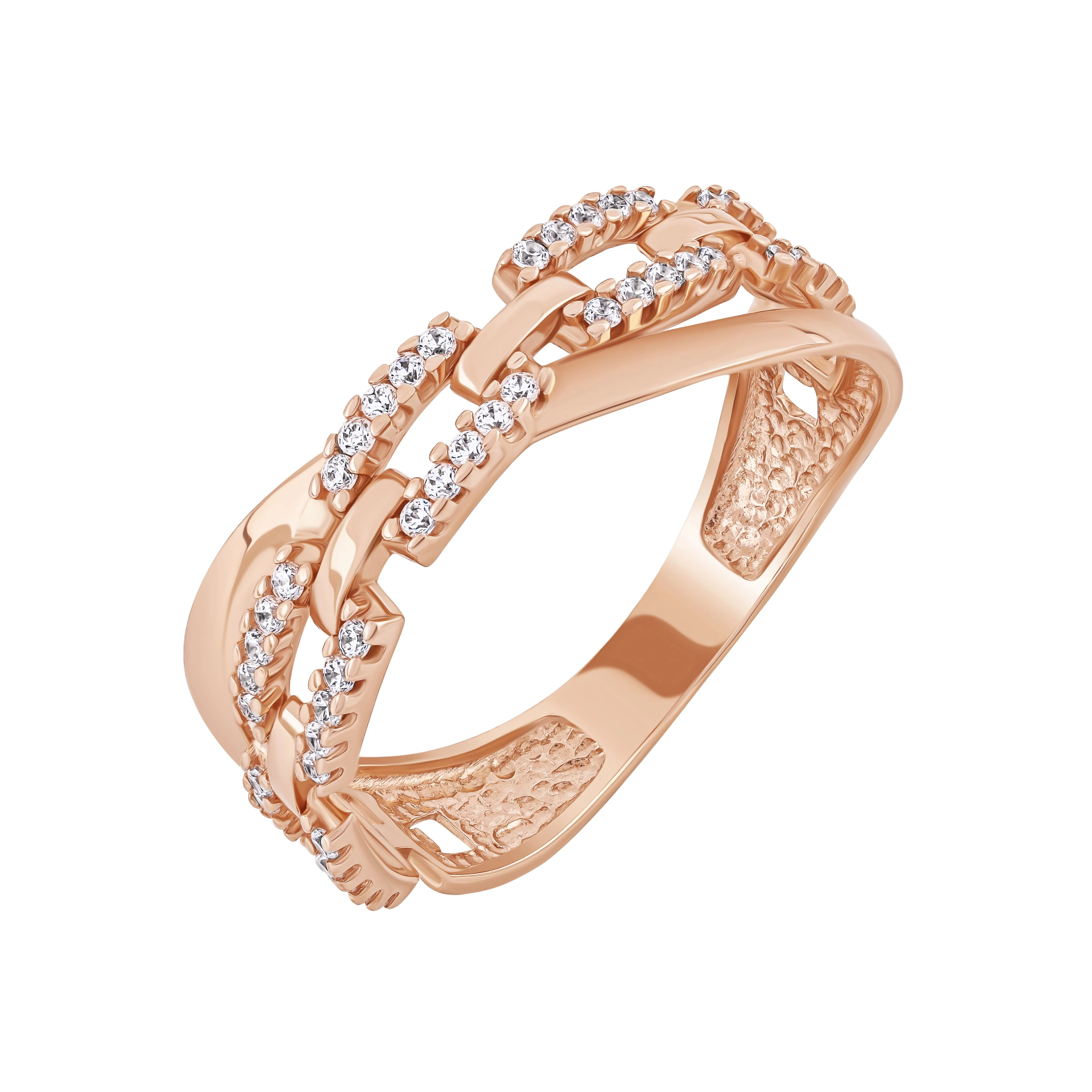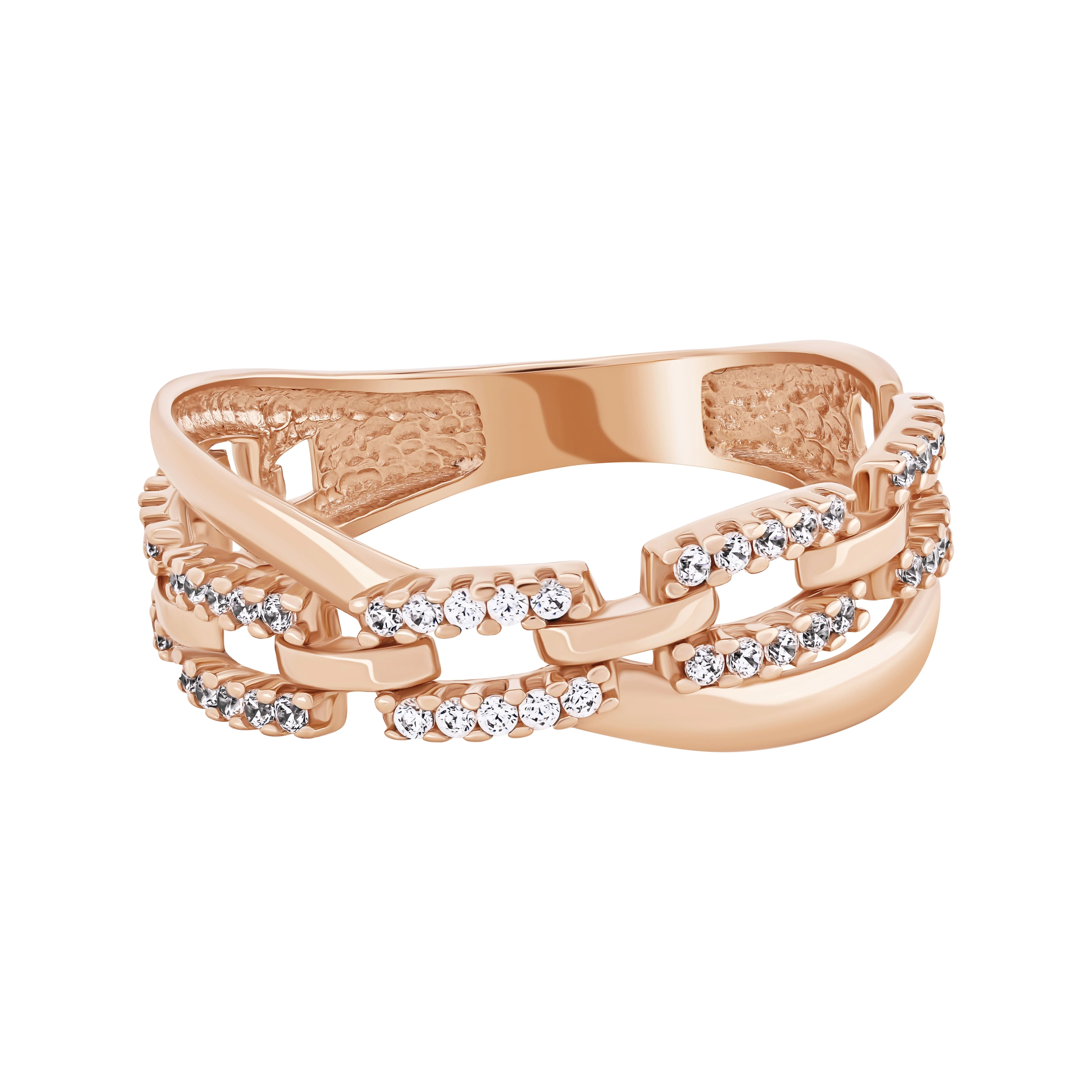 Каблучка у червоному золоті у формі ланок з фіанітами - 2036711