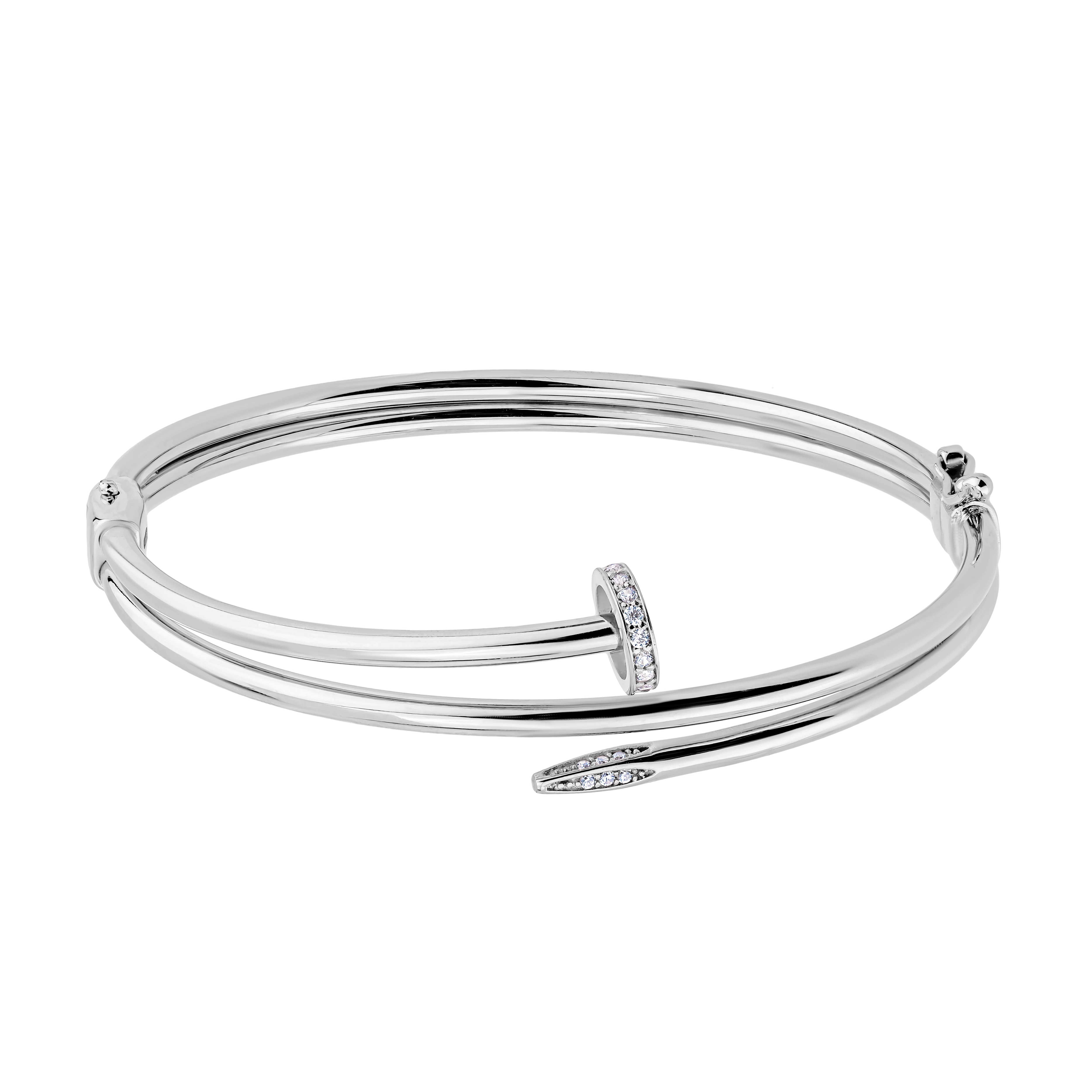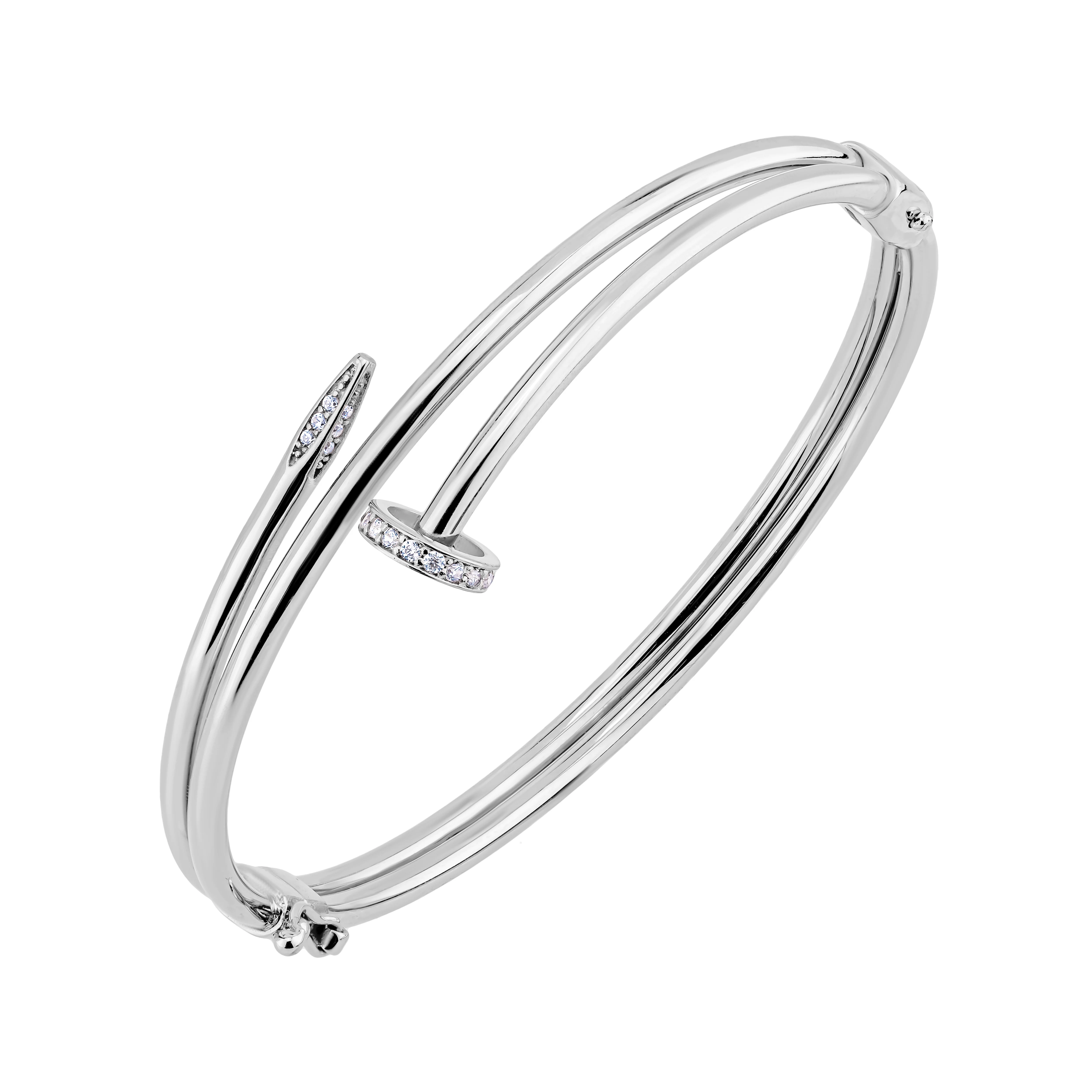 Браслет з білого золота "Цвях" з фіанітами - 2029413