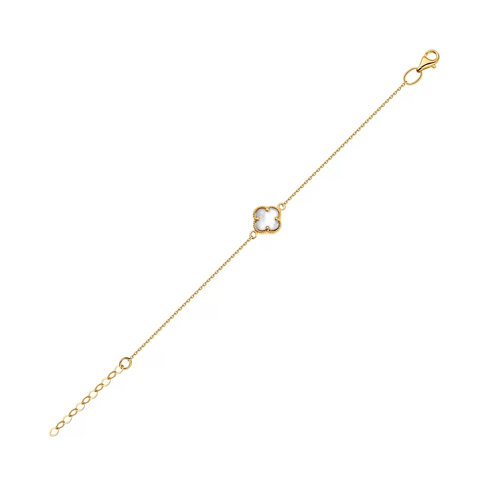 Золотий браслет "Конюшина" з перламутром плетіння якірне - 1516133