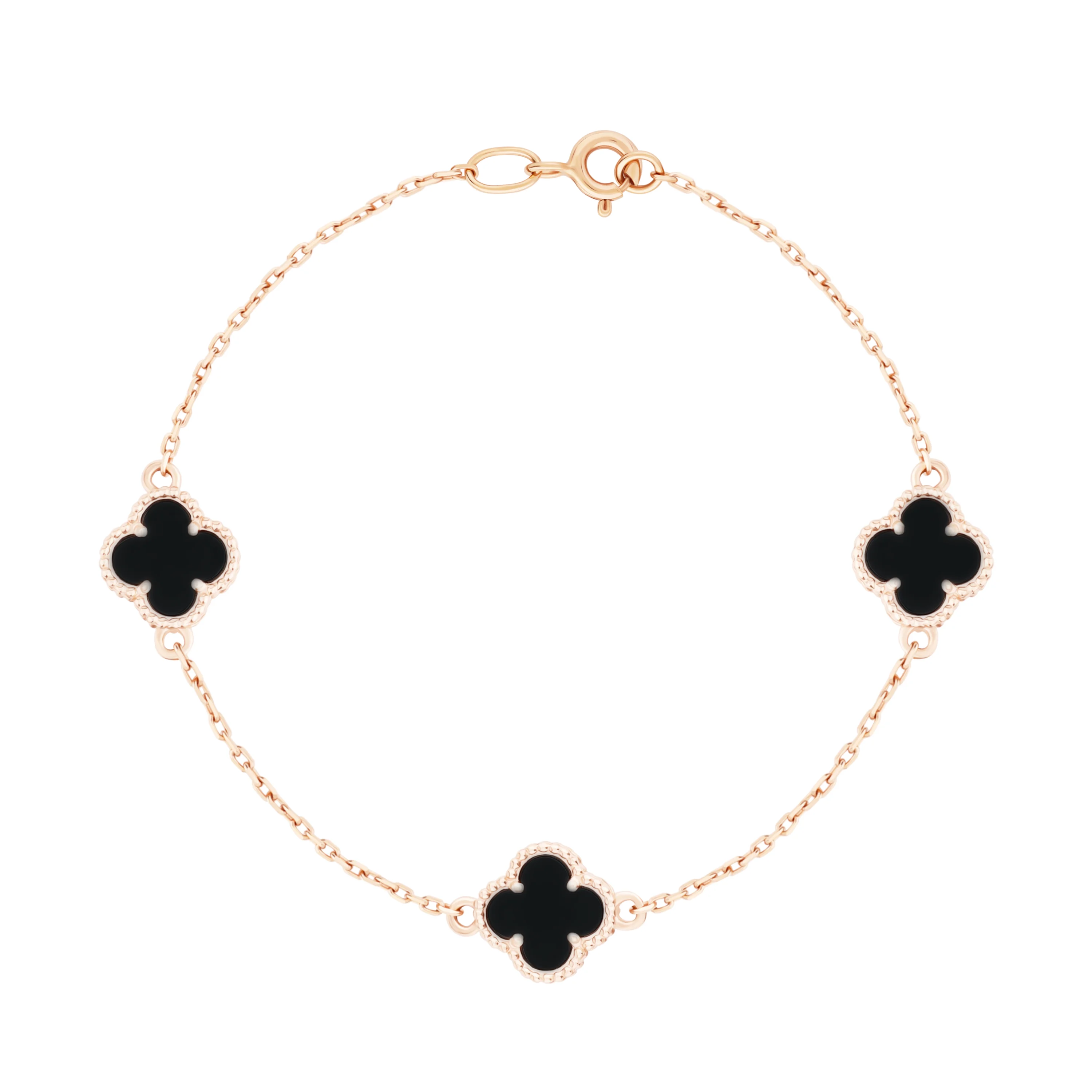 Браслет з червоного золота "Конюшина" з оніксом і перламутром - 1761586