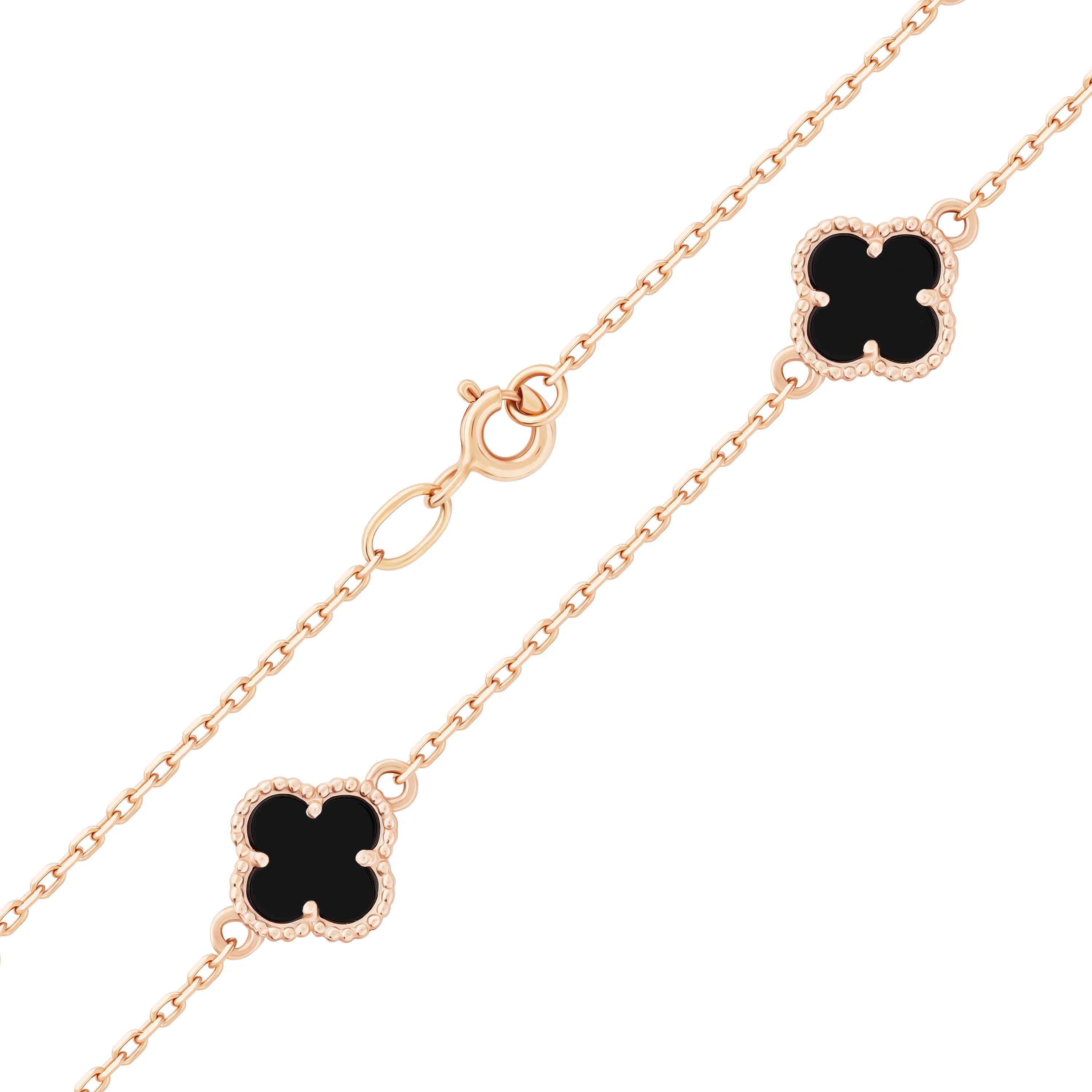 Браслет "Конюшина" з червоного золота з оніксом у якірному плетінні - 1747727