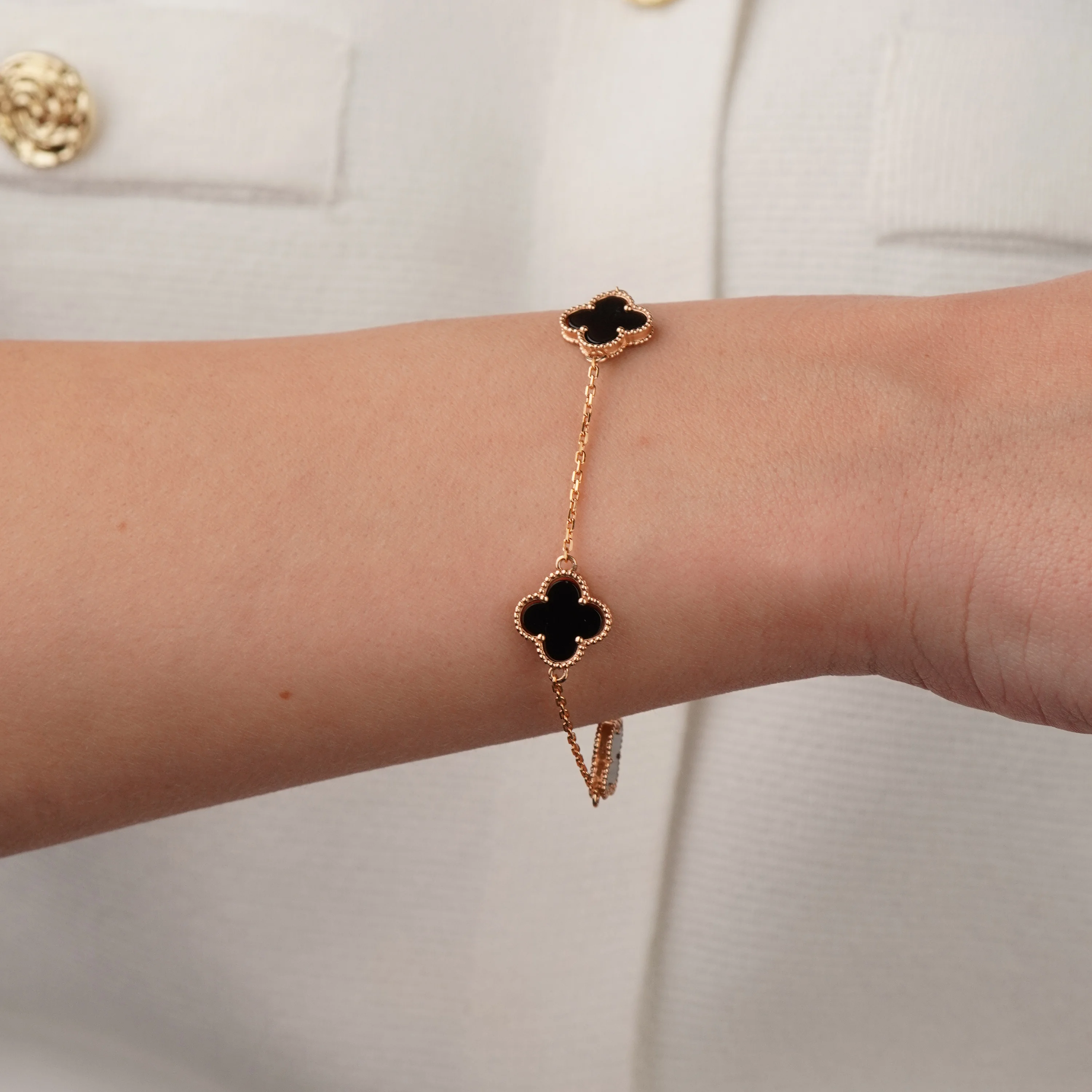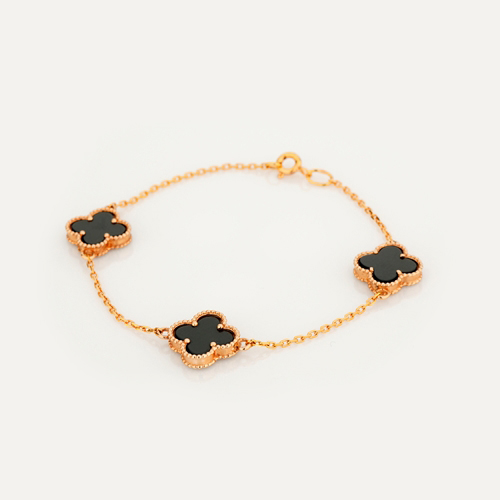 Браслет з червоного золота "Конюшина" з оніксом і перламутром - 1761586