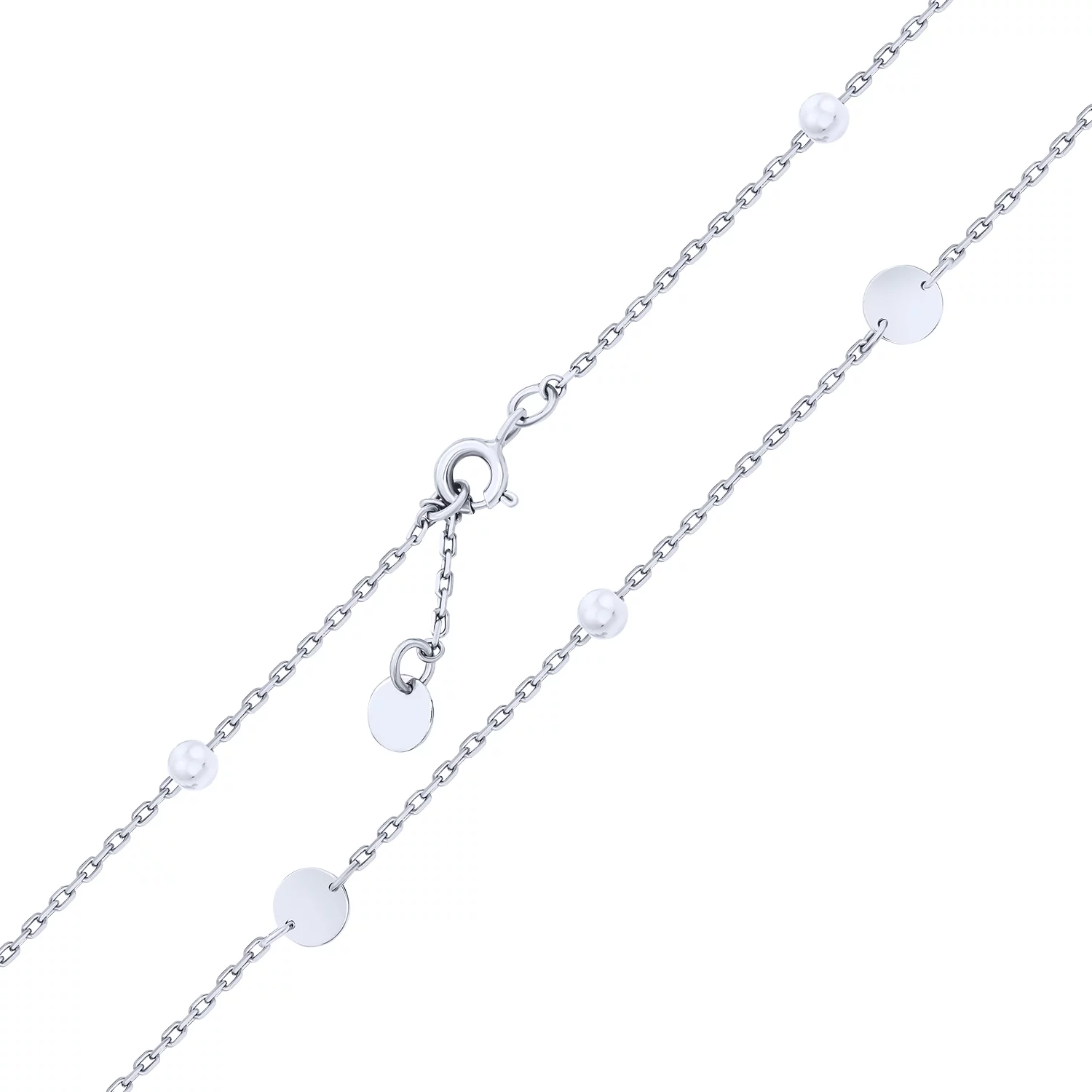 Браслет з білого золота у якірному плетінні з круглими вставками - 1584909