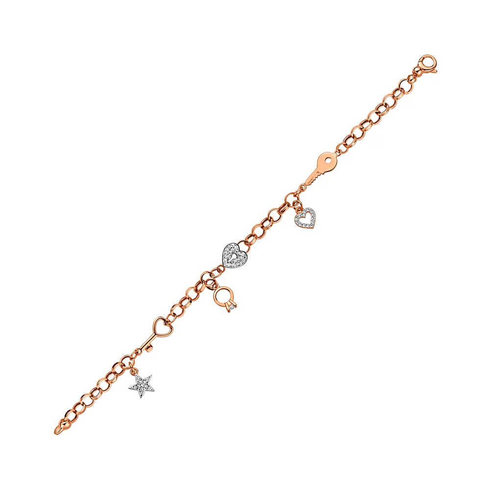 Золотий браслет з підвісами та фіанітами плетіння якір - 1516310