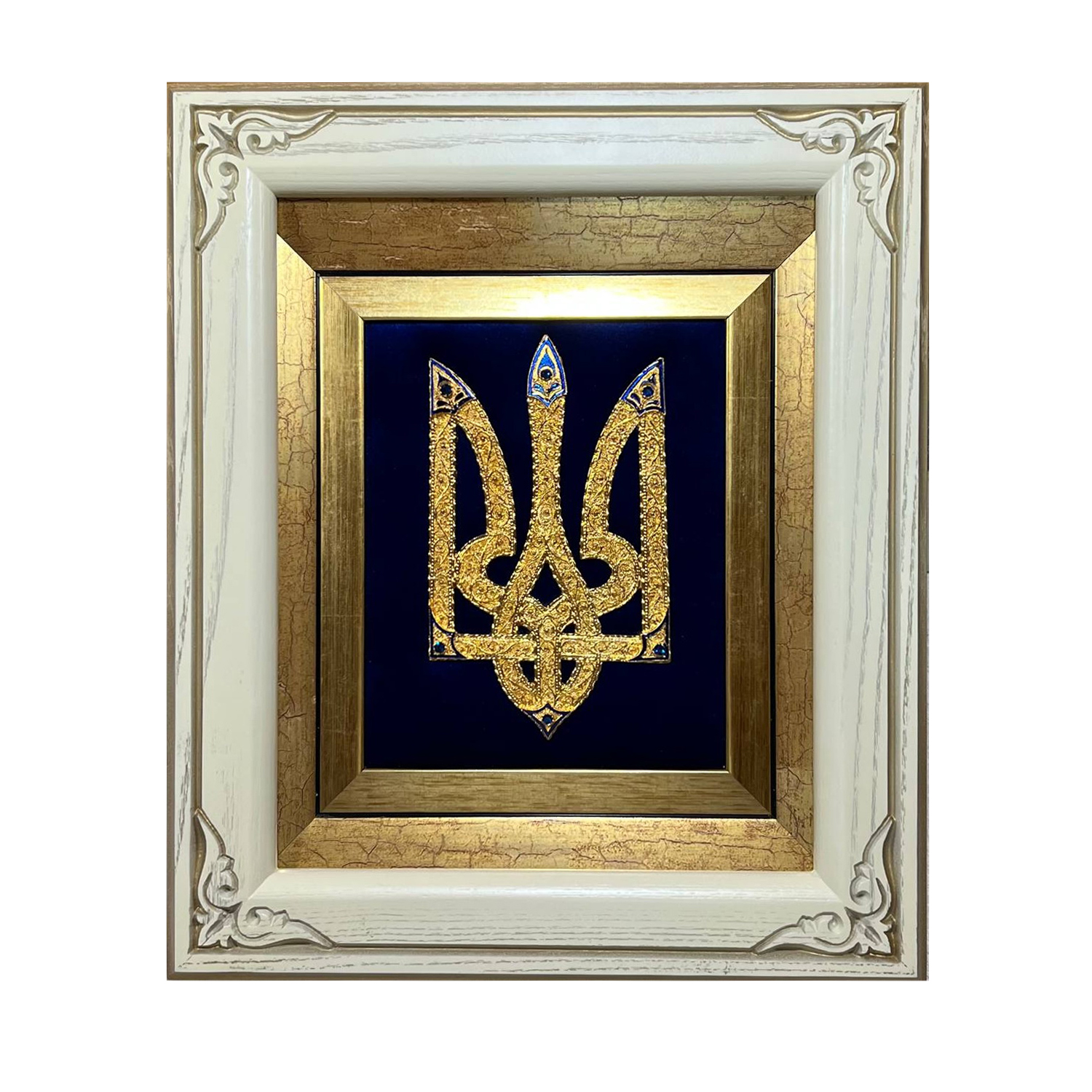 Колаж з позолотою "Тризуб" з фіанітами - 1573283