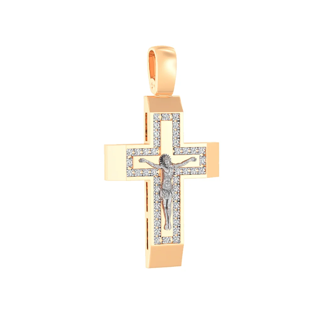 Хрестик "Ісус Христос" у комбінованому золоті з емаллю та фіанітами - 1951075