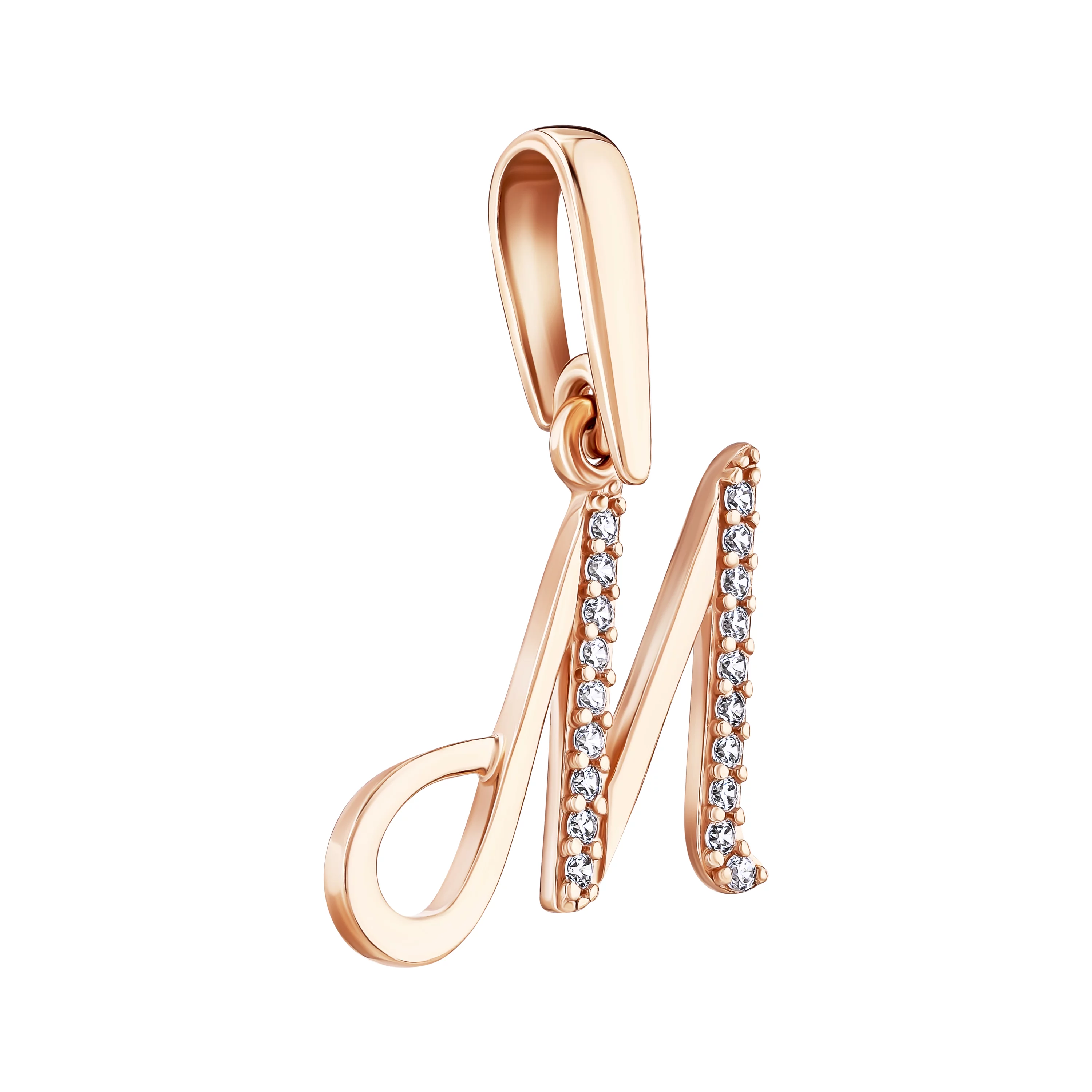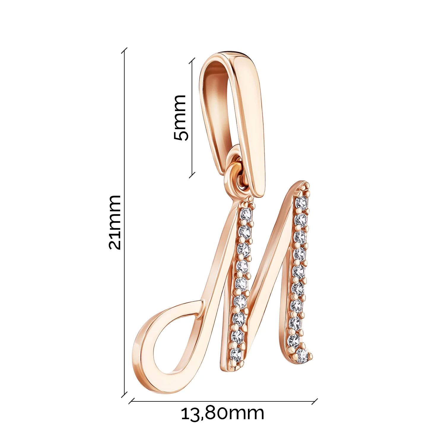 Золотий підвіс "Літера М" з фіанітами - 1614985