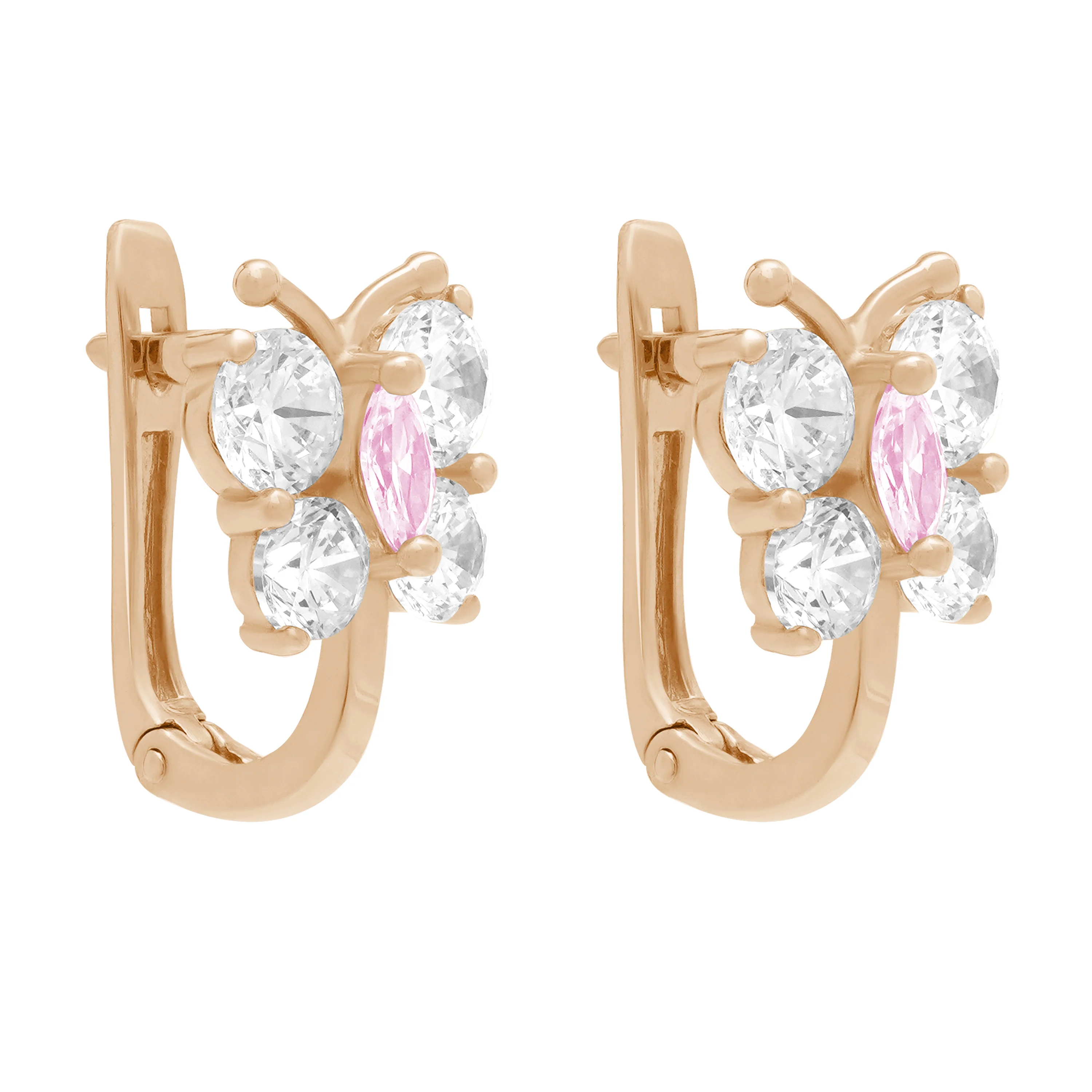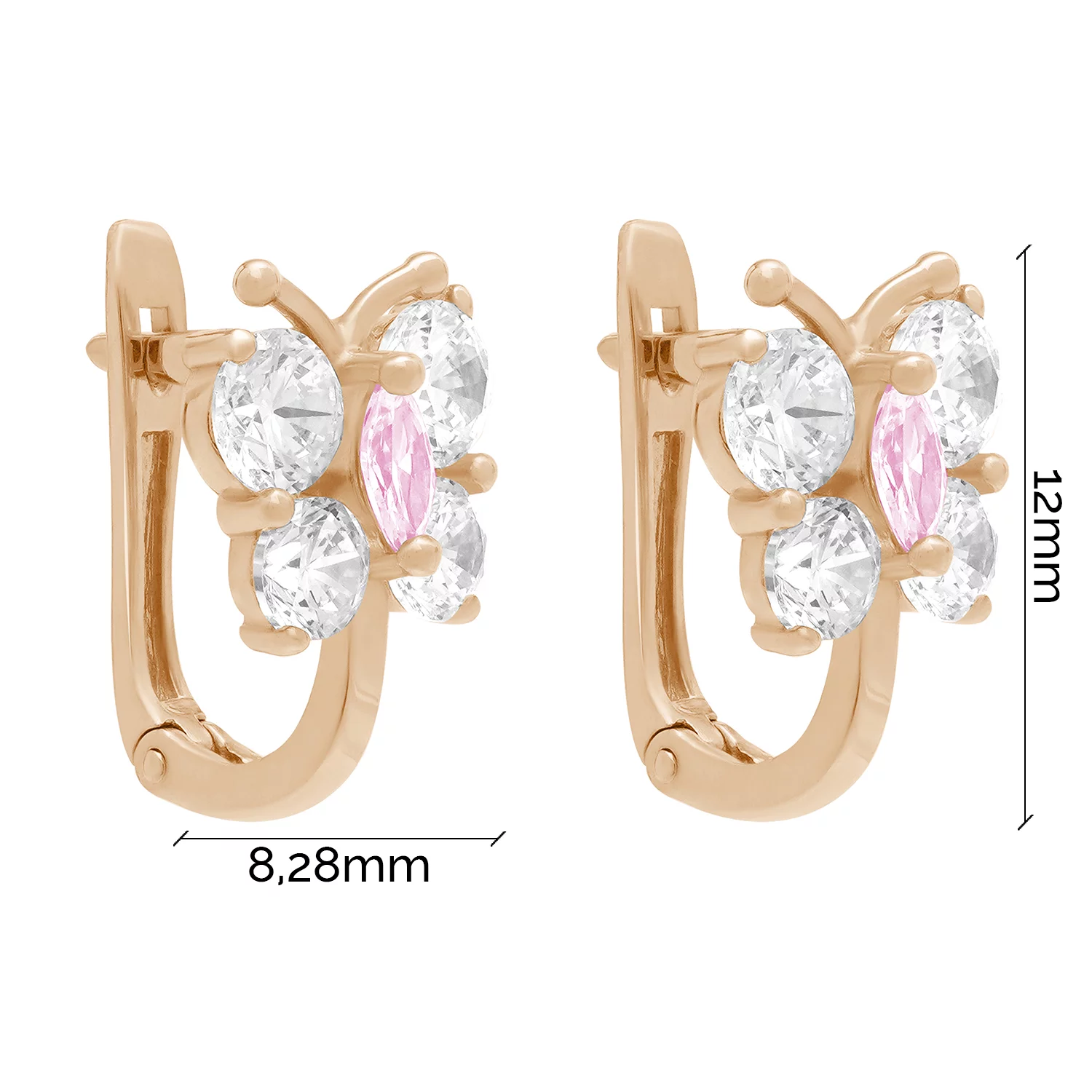 Стильні дитячі сережки "Метелик" у червоному золоті з фіанітами - 1949875