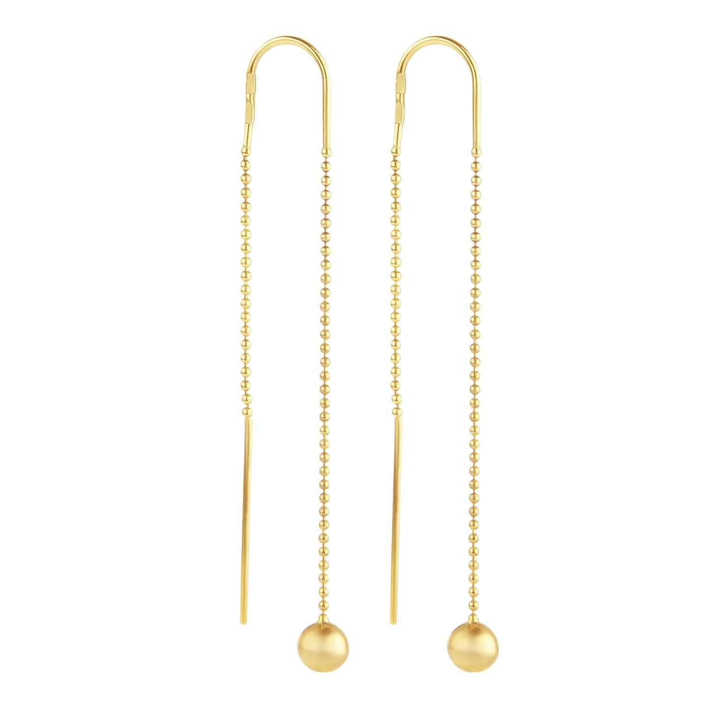 Золоті сережки-протяжки із золота 585 проби стануть ідеальним вибором для любительки витончених і стриманих прикрас, виконаних відповідно до сучасних модних тенденцій. Ці елегантні сережки поєднують у собі простоту і вишуканість, завдяки чому вони ідеально підходять для будь-якого випадку - від повсякденних образів до вечірніх виходів. Довга форма протяжок візуально подовжує шию і надає образу витонченості, а золотий блиск підкреслює природну красу. Простота і елегантність цих сережок дозволять вам без зусиль поєднувати їх з різними стилями одягу. Сережки-протяжки ідеально підійдуть для створення жіночного і стильного образу, залишаючись при цьому універсальними.