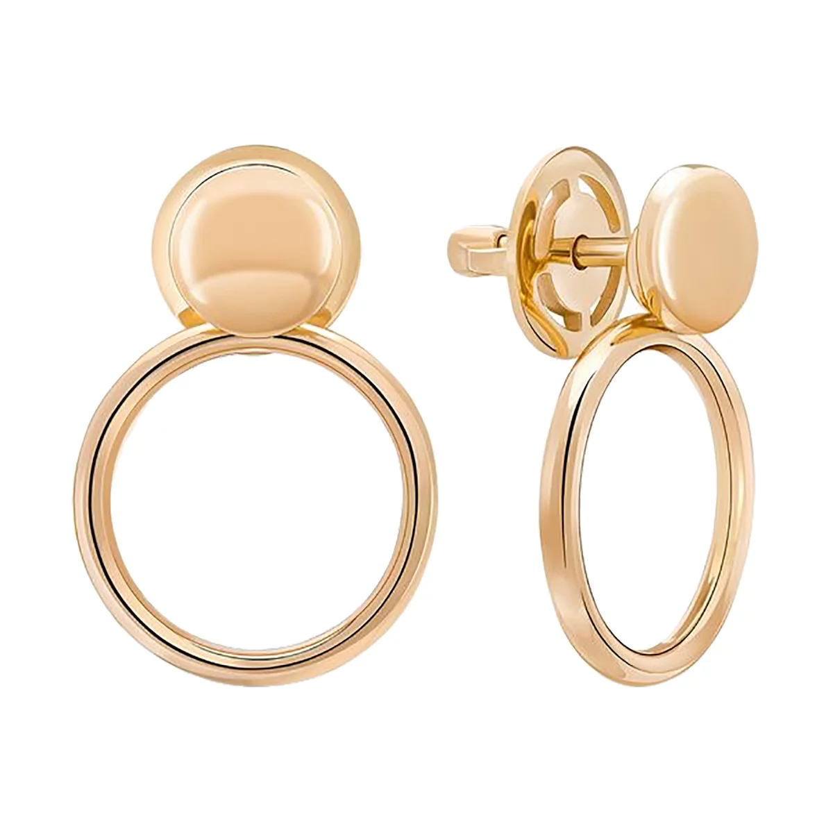 Сережки-гвоздики з підвісом із комбінованого золота з алмазною гранню - 1870255