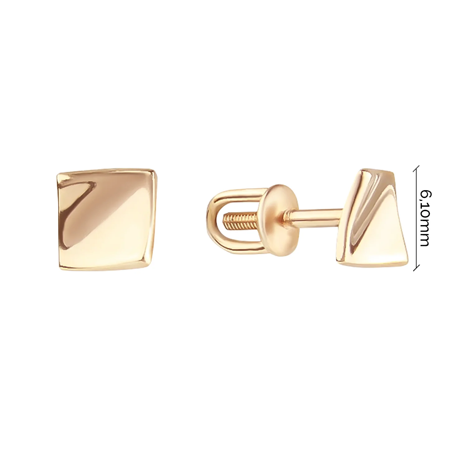 Сережки-пусети "Квадрат" у червоному золоті - 614188