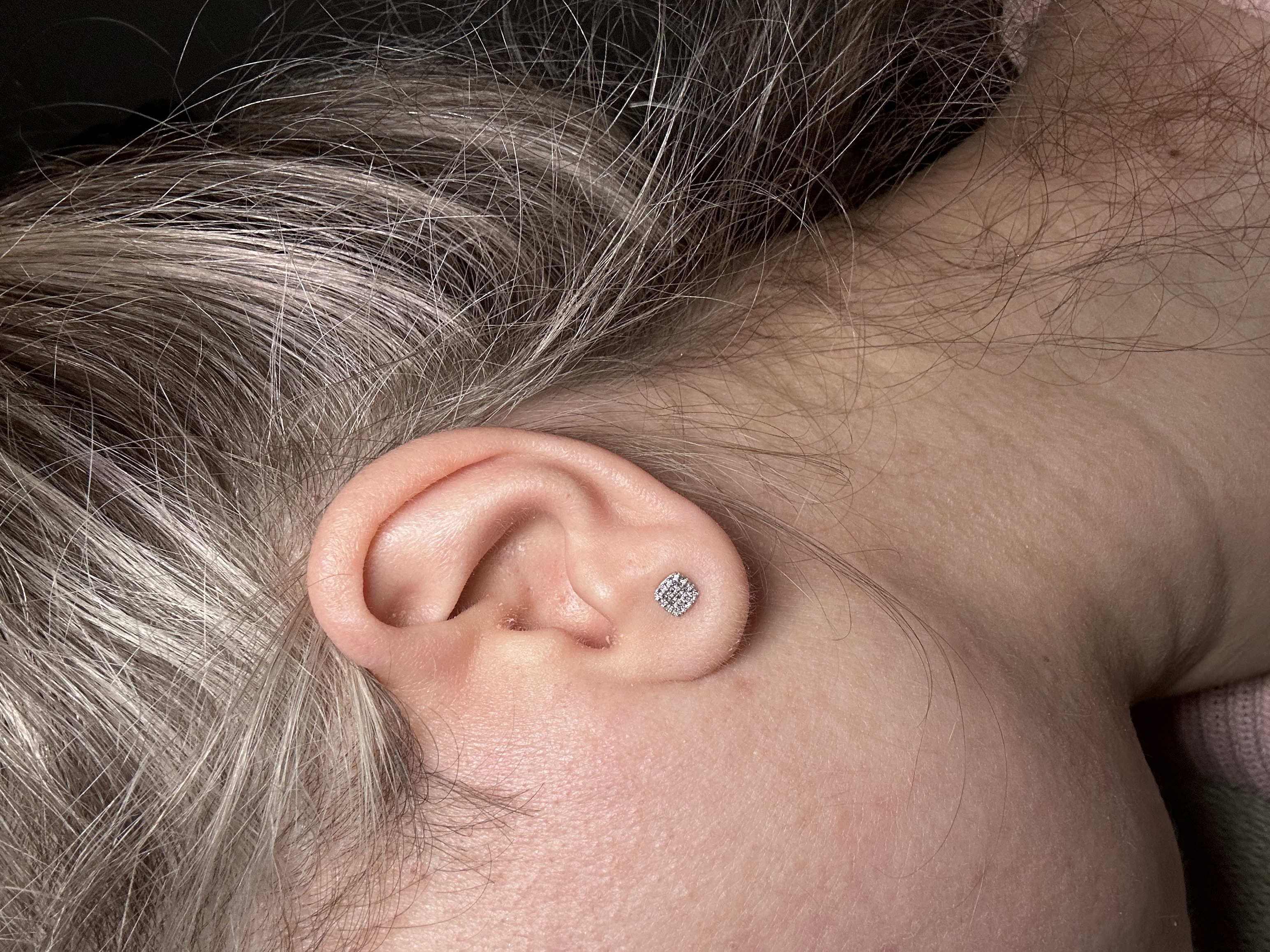 Сережки-пусети "Квадрат" у мінімалістичному стилі з білого золота з діамантом - 1876382