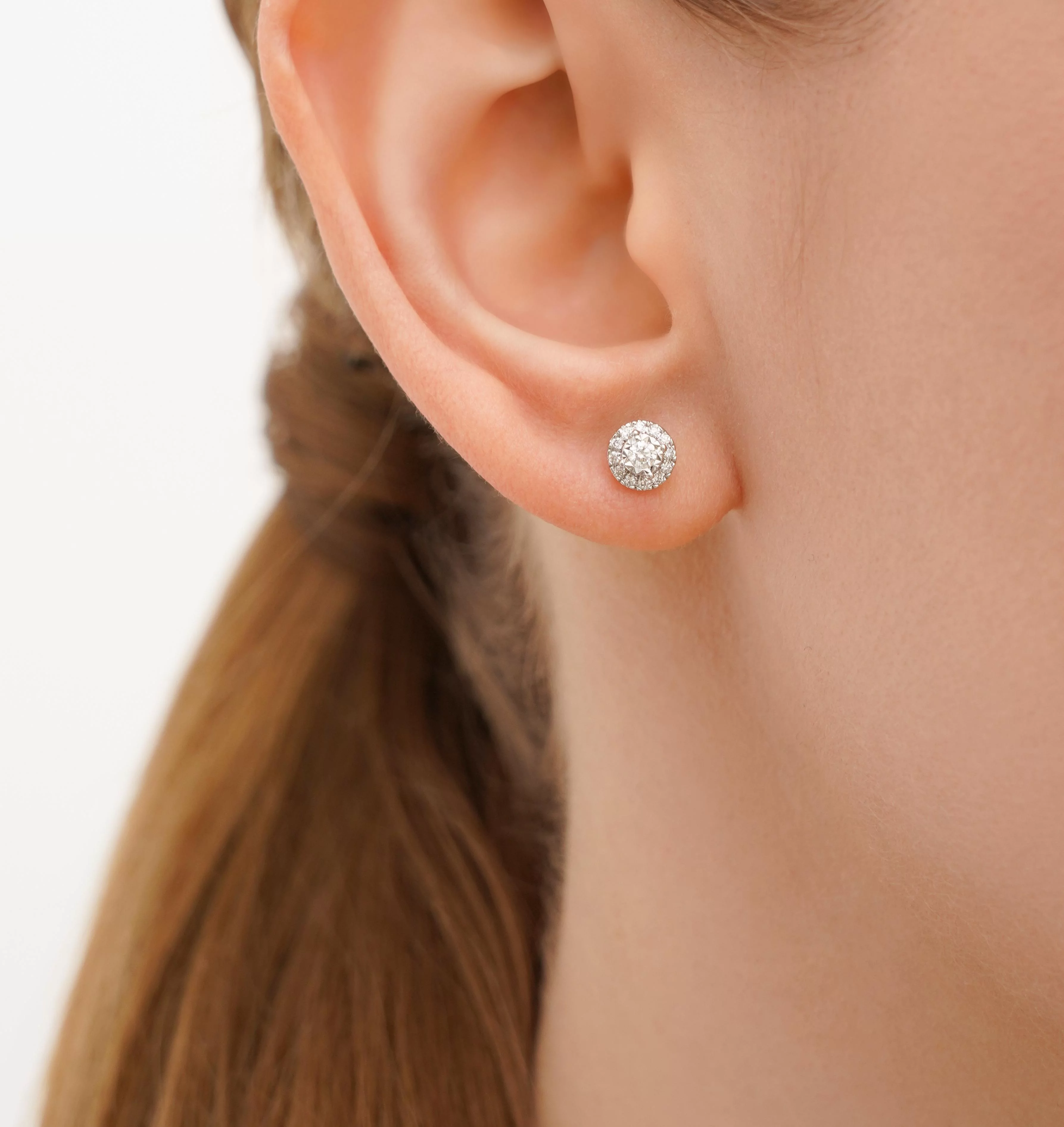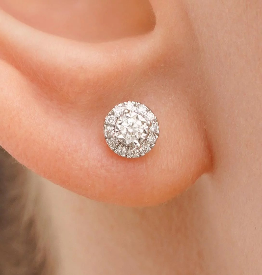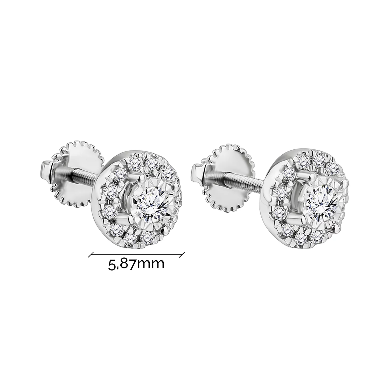 Сережки-гвоздики з білого золота з білими і чорними діамантами - 879814