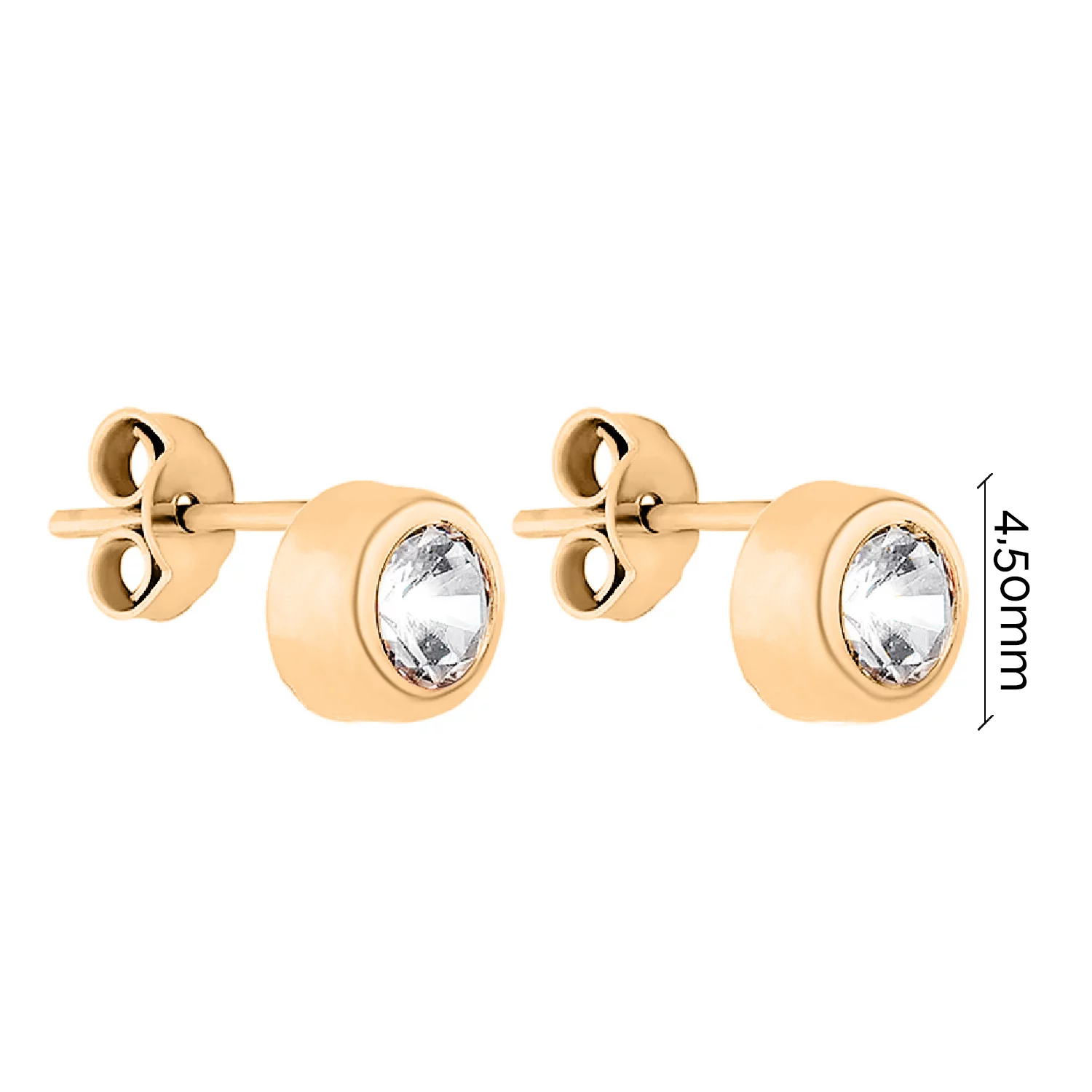 Сережки-гвоздики "Серце" в романтичному стилі з червоного золота та з фіанітами - 1859350