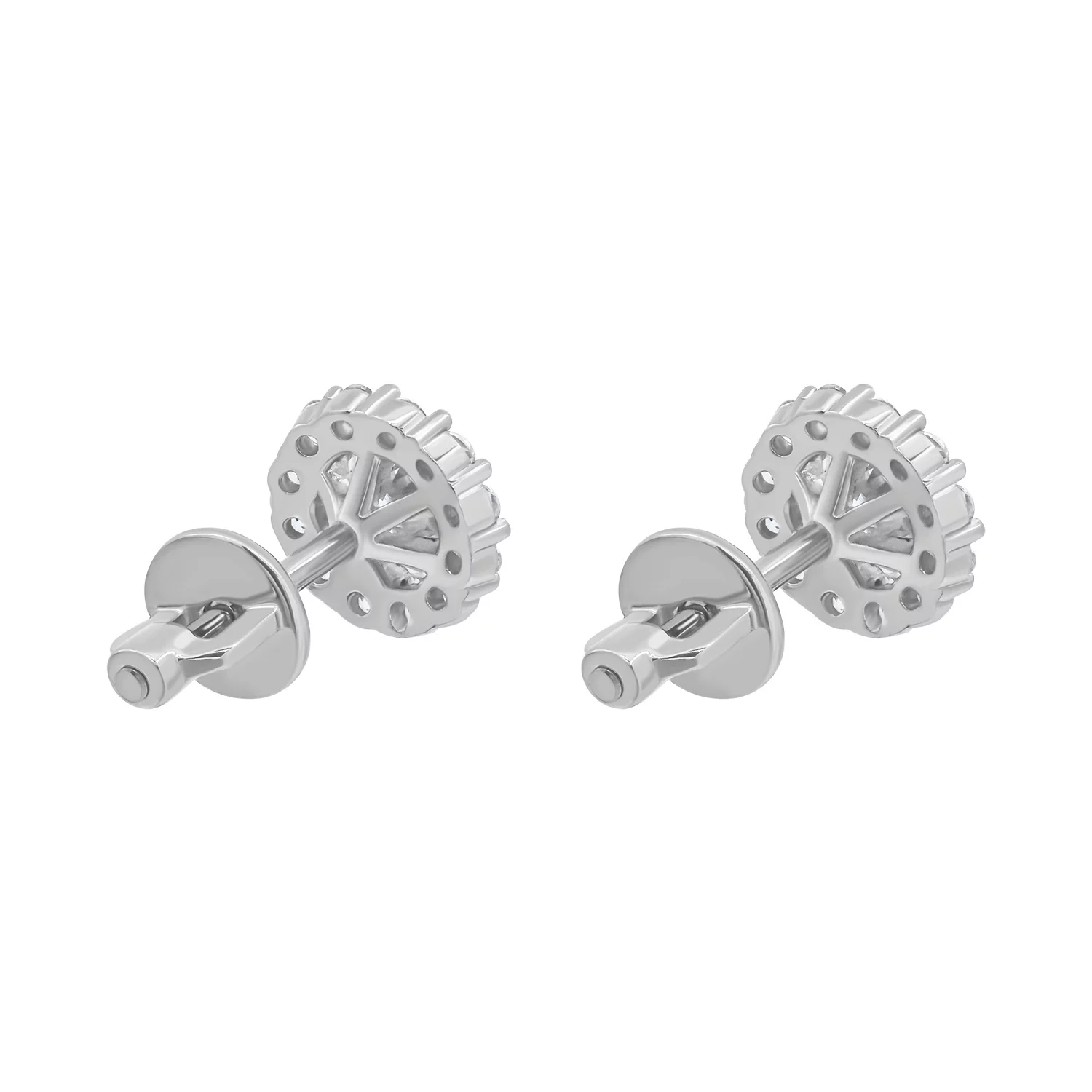 Стильні сережки-гвоздики "Флора" з червоного золота з емаллю та фіанітом - 1927691