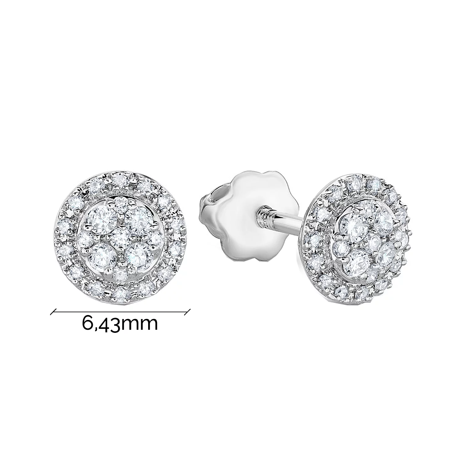 Елегантні сережки-пусети "Квіточка" у білому золоті з діамантами - 1958571