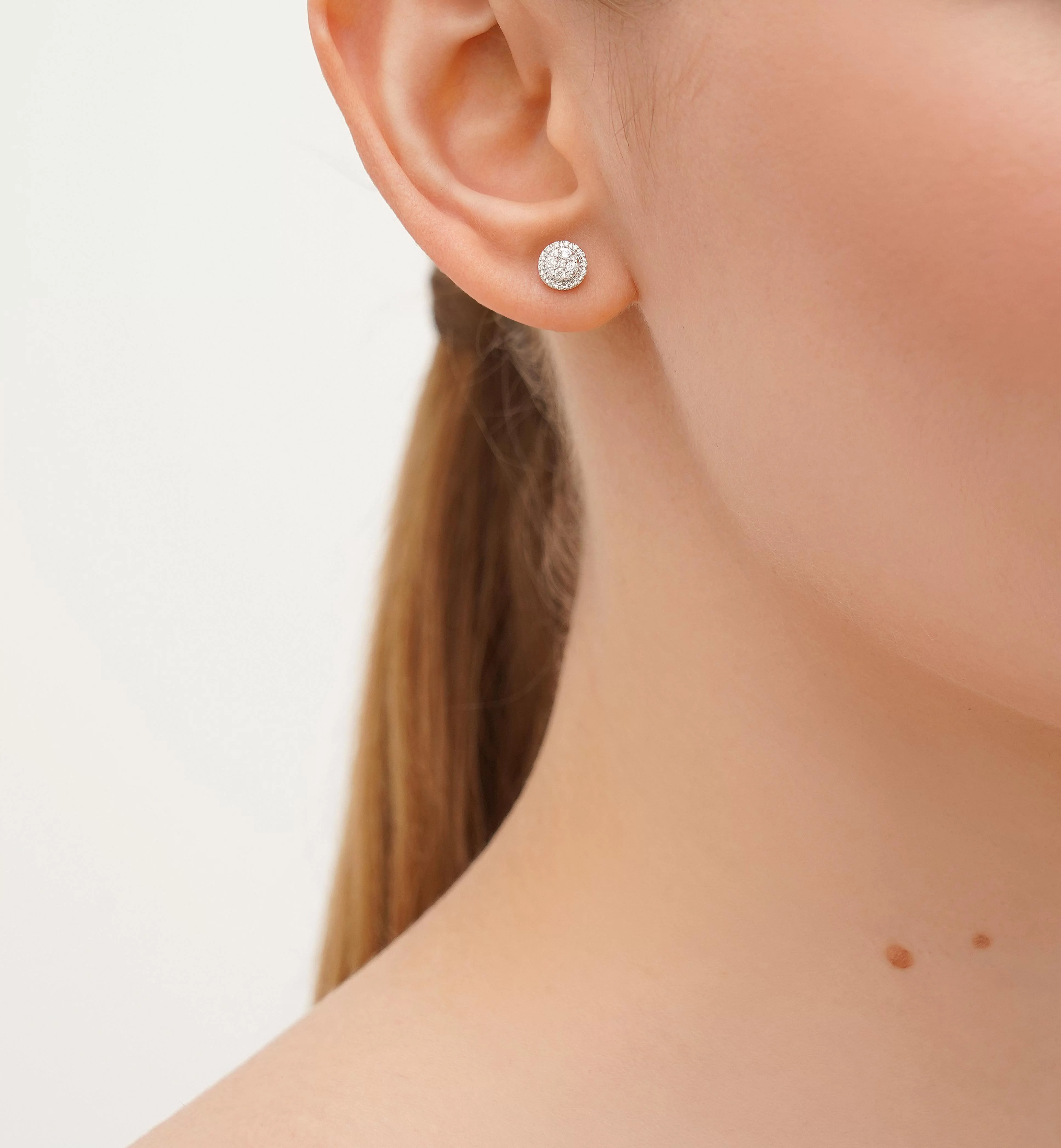 Сережки-пусети "Коло" в білому золоті з доріжками з діамантів - 1876381